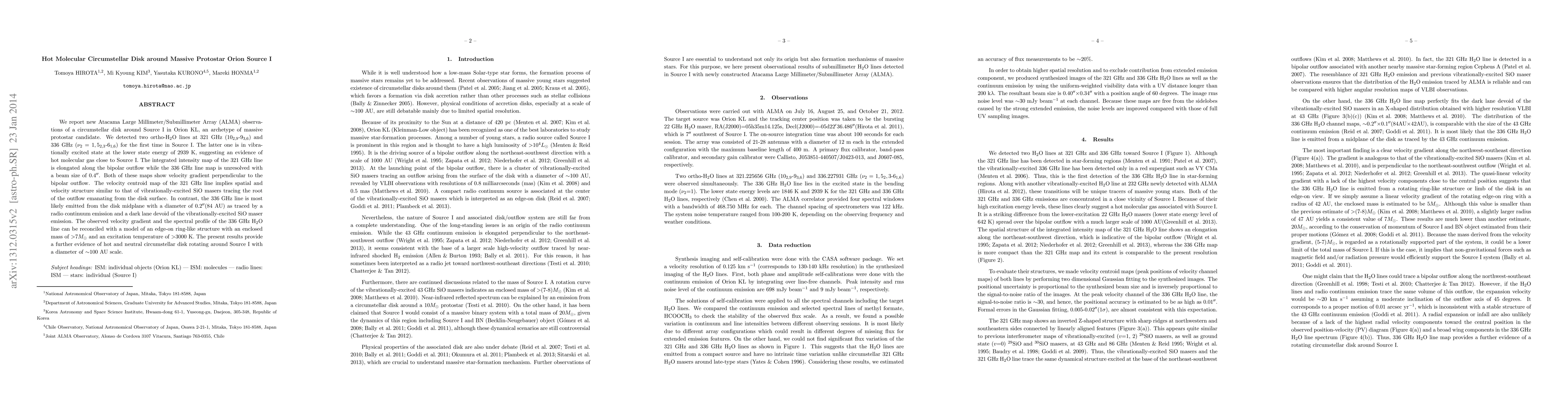 Astronomers have detected a hot molecular disk around a massive protostar in Orion KL, revealing evidence of gas close to the star at temperatures over 3000K. The findings suggest a rotating disk with a diameter of about 100 AU scale.