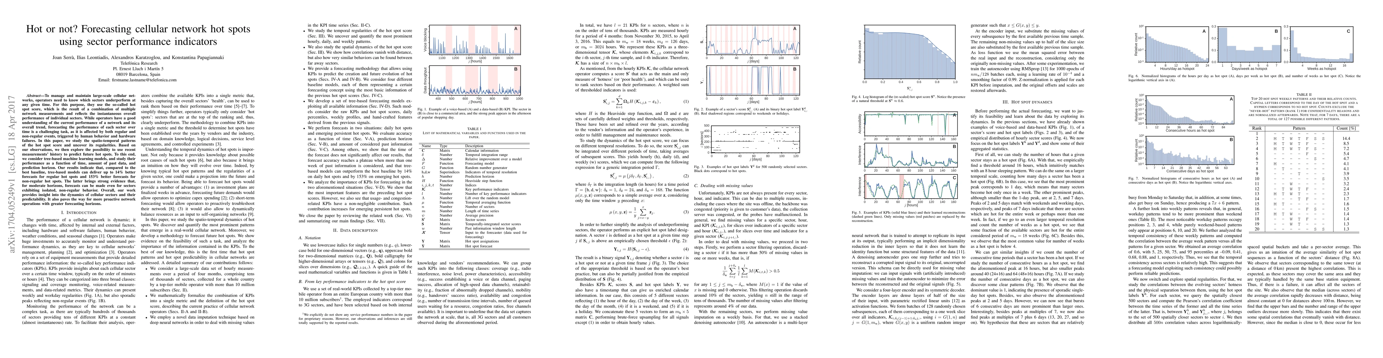 To manage and maintain large-scale cellular networks, operators need to know which sectors underperform at any given time. For this purpose, they use the so-called hot spot score, which is the result of a combination of multiple network measurements and reflects the instantaneous overall performance of individual sectors. While operators have a good understanding of the current performance of a network and its overall trend, forecasting the performance of each sector over time is a challenging task, as it is affected by both regular and non-regular events, triggered by human behavior and hardware failures. In this paper, we study the spatio-temporal patterns of the hot spot score and uncover its regularities. Based on our observations, we then explore the possibility to use recent measurements' history to predict future hot spots. To this end, we consider tree-based machine learning models, and study their performance as a function of time, amount of past data, and prediction horizon. Our results indicate that, compared to the best baseline, tree-based models can deliver up to 14% better forecasts for regular hot spots and 153% better forecasts for non-regular hot spots. The latter brings strong evidence that, for moderate horizons, forecasts can be made even for sectors exhibiting isolated, non-regular behavior. Overall, our work provides insight into the dynamics of cellular sectors and their predictability. It also paves the way for more proactive network operations with greater forecasting horizons.