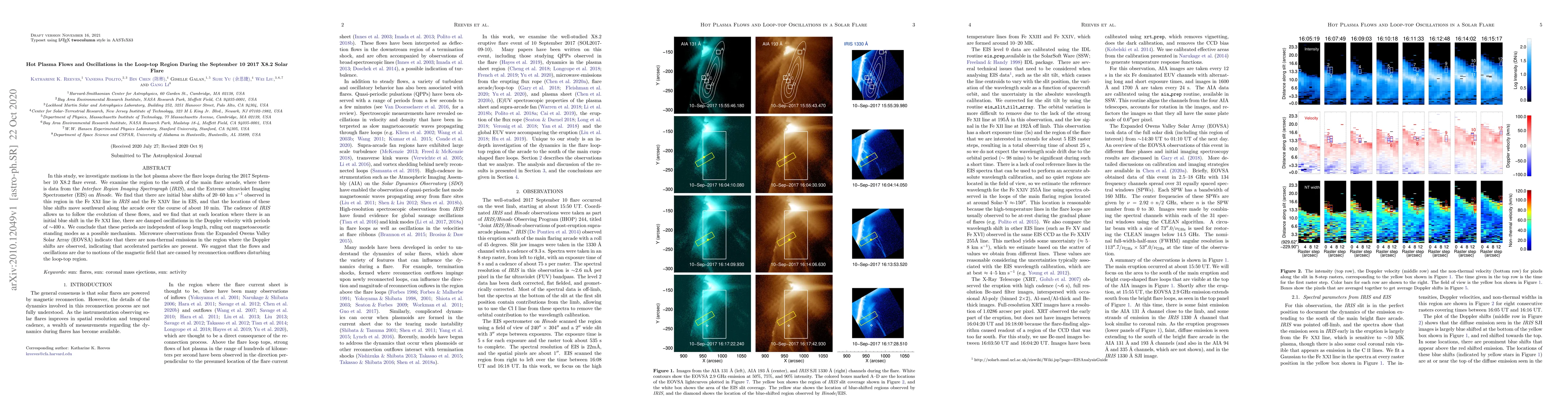 The study observes rapid plasma flows and oscillations above solar flare loops, caused by magnetic reconnection disturbances. These findings help understand the dynamic processes in solar flares and the role of accelerated particles.