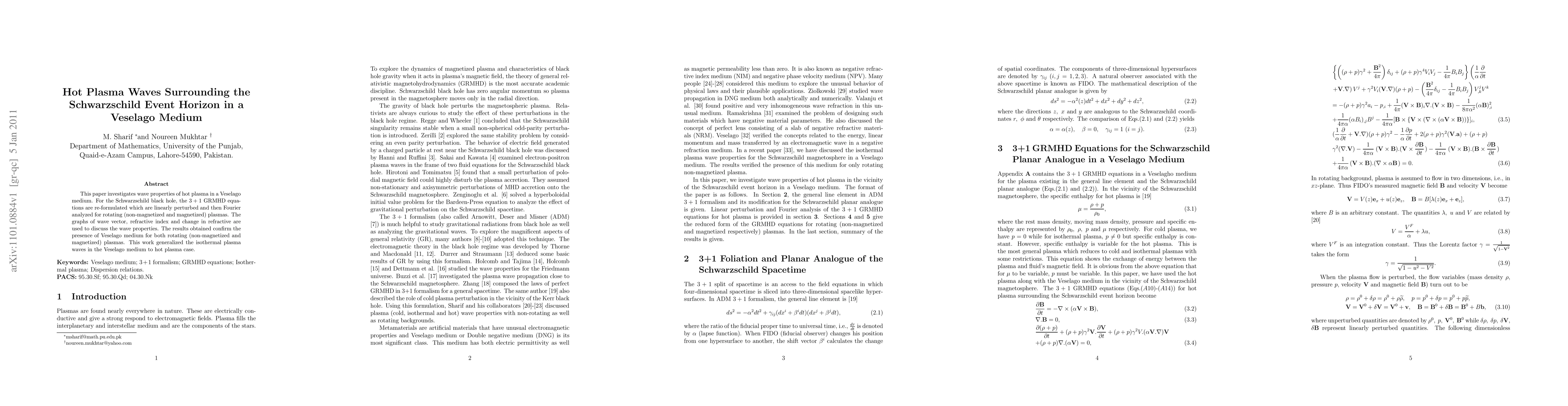 This paper reformulates and analyzes the $3+1$ GRMHD equations for hot plasma waves in a Veselago medium around a Schwarzschild black hole, confirming the presence of such a medium for both rotating magnetized and non-magnetized plasmas, extending previous isothermal plasma wave studies.