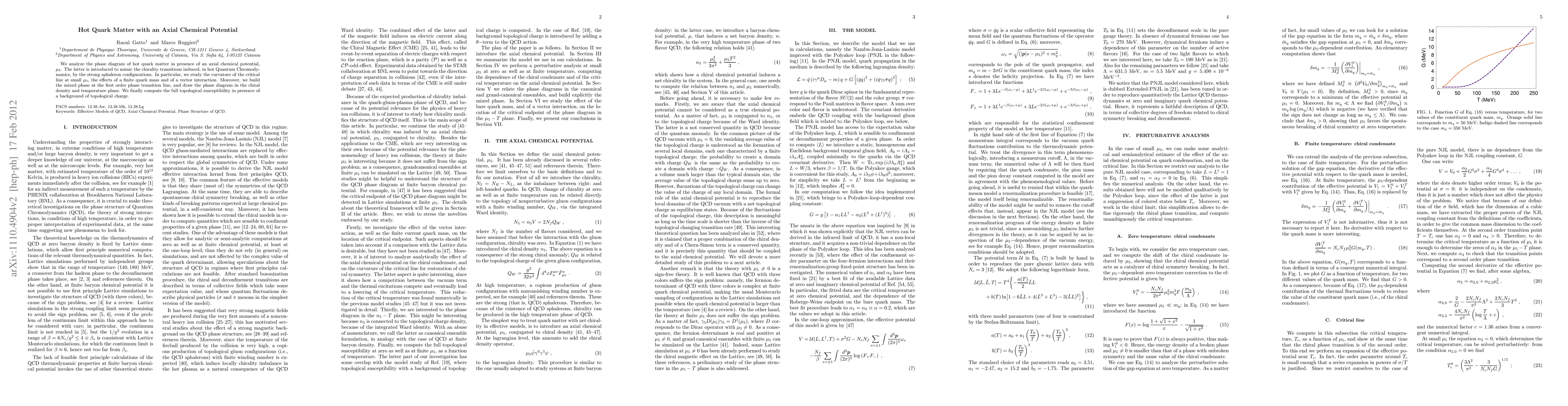 We analyze the phase diagram of hot quark matter in presence of an axial chemical potential, $\mu_5$. The latter is introduced to mimic the chirality transitions induced, in hot Quantum Chromodynamics, by the strong sphaleron configurations. In particular, we study the curvature of the critical line at small $\mu_5$, the effects of a finite quark mass and of a vector interaction. Moreover, we build the mixed phase at the first order phase transition line, and draw the phase diagram in the chiral density and temperature plane. We finally compute the full topological susceptibility in presence of a background of topological charge.