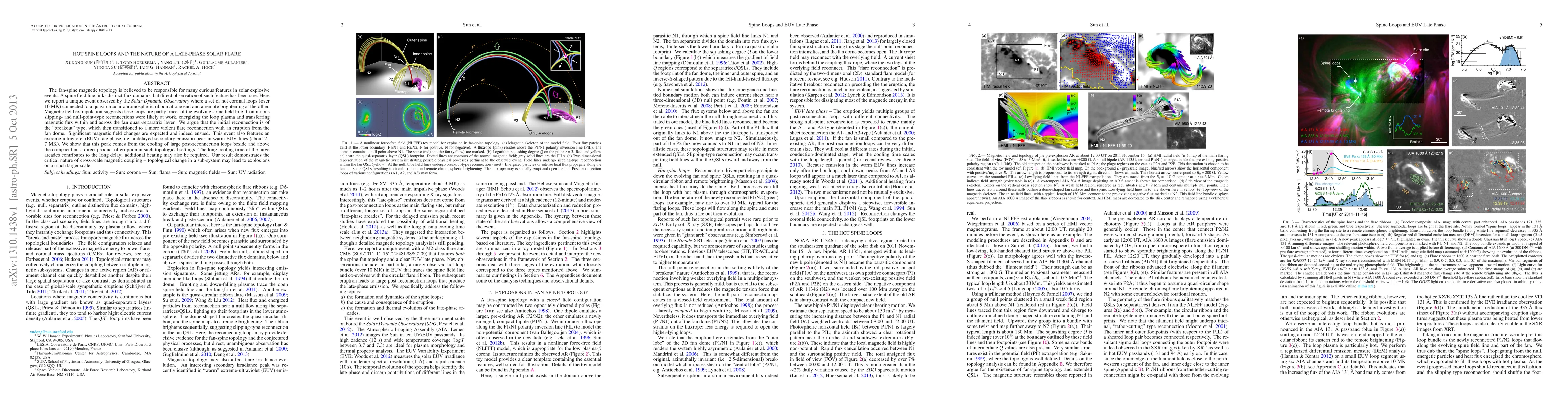 This paper reports a unique solar flare event observed by the Solar Dynamic Observatory, revealing hot coronal loops connected to a spine field line, which suggests the fan-spine magnetic topology's role in solar explosive events. The study highlights a delayed secondary emission peak in EUV lines, attributed to the cooling of large post-reconnection loops, emphasizing the critical nature of cross-scale magnetic coupling in solar flares.