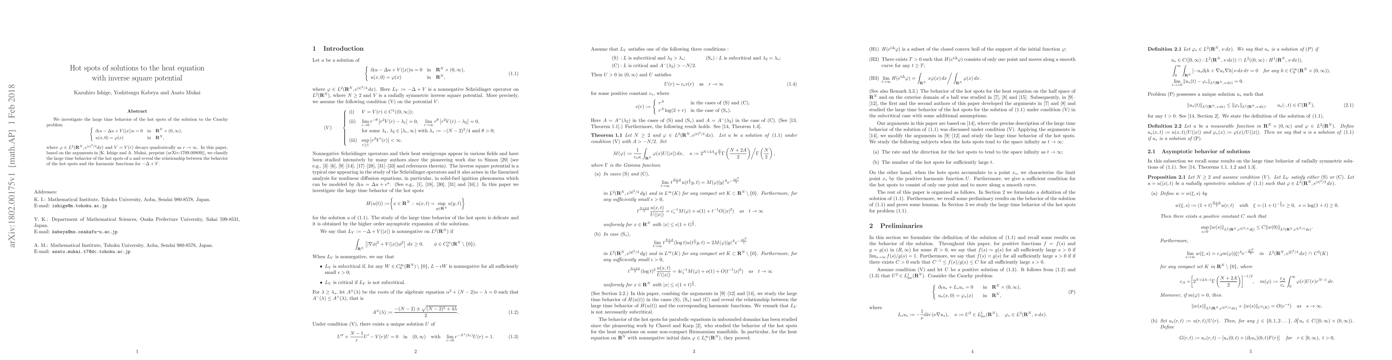 The paper investigates the long-term behavior of hot spots in solutions to a heat equation with a potential that decays quadratically as distance increases. It reveals the relationship between hot spot behavior and harmonic functions for a related operator.