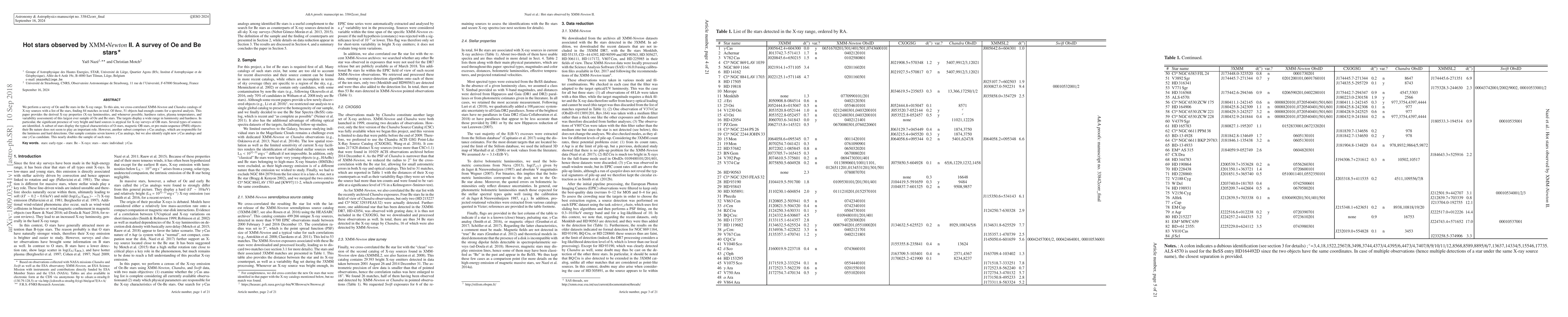 We perform a survey of Oe and Be stars in the X-ray range. To this aim, we cross-correlated XMM-Newton and Chandra catalogs of X-ray sources with a list of Be stars, finding 84 matches in total. Of these, 51 objects had enough counts for a spectral analysis. This paper provides the derived X-ray properties (X-ray luminosities, and whenever possible, hardness ratios, plasma temperatures, and variability assessment) of this largest ever sample of Oe and Be stars. The targets display a wide range in luminosity and hardness. In particular, the significant presence of very bright and hard sources is atypical for X-ray surveys of OB stars. Several types of sources are identified. A subset of stars display the typical characteristics of O-stars, magnetic OB stars, or pre-main-sequence (PMS) objects: their Be nature does not seem to play an important role. However, another subset comprises gamma Cas analogs, which are responsible for the luminous and hard detections. Our sample contains seven known gamma Cas analogs, but we also identify eight new gamma Cas analogs and one gamma Cas candidate. This nearly doubles the sample of such stars.