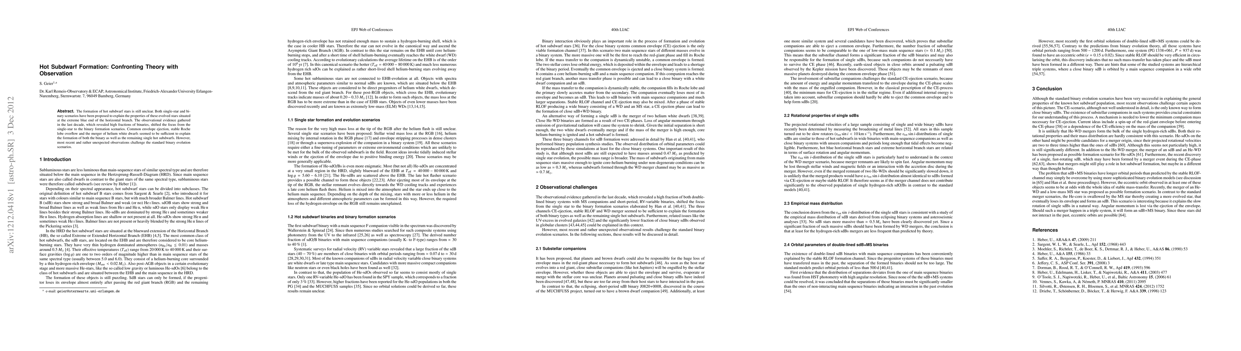 The formation of hot subdwarf stars is still unclear. Both single-star and binary scenarios have been proposed to explain the properties of these evolved stars situated at the extreme blue end of the horizontal branch. The observational evidence gathered in the last decade, which revealed high fractions of binaries, shifted the focus from the single-star to the binary formation scenarios. Common envelope ejection, stable Roche lobe overflow and the merger of helium white dwarfs seemed to be sufficient to explain the formation of both the binary as well as the remaining single hot subdwarfs. However, most recent and rather unexpected observations challenge the standard binary evolution scenarios.