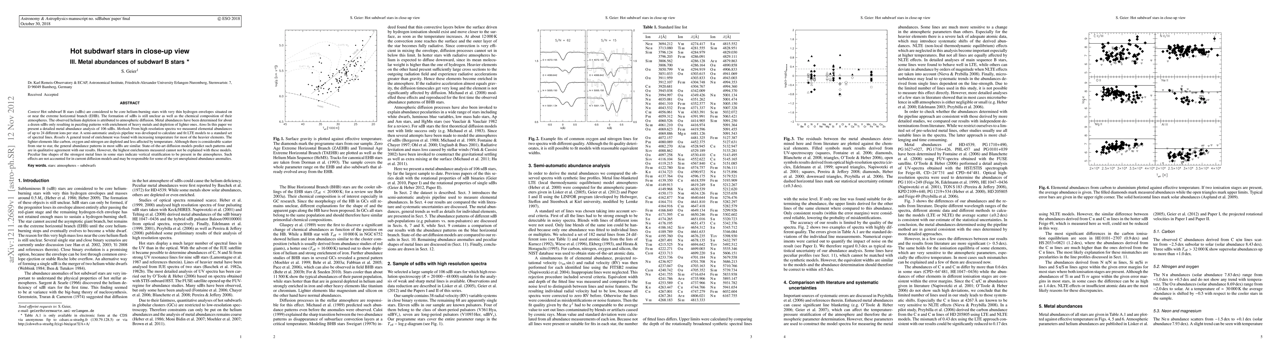 This paper presents a detailed metal abundance analysis of 106 hot subdwarf B stars, revealing a general trend of enrichment for heavier elements with increasing temperature, while lighter elements like carbon, oxygen, and nitrogen are depleted. The observed patterns align with state-of-the-art diffusion models but cannot fully explain the highest enrichments, suggesting additional vertical stratification effects in some star atmospheres.