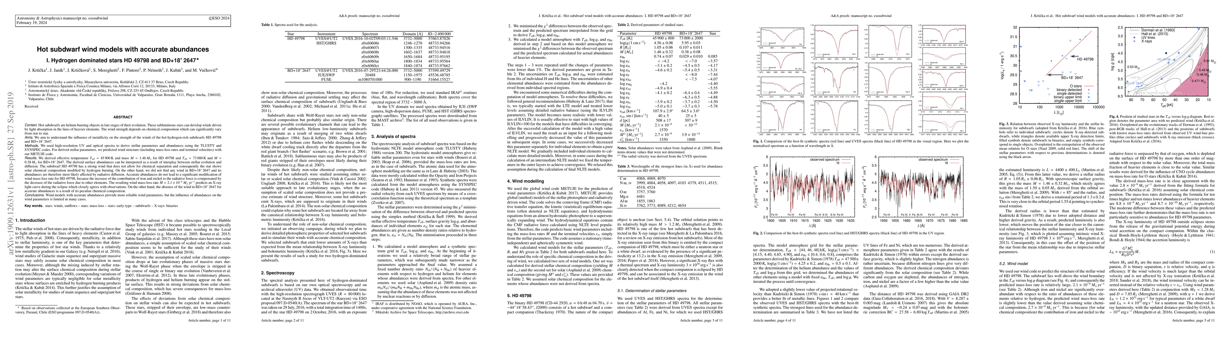 Hot subdwarfs are helium burning objects in late stages of their evolution. These stars can develop winds driven by light absorption in the lines of heavier elements. The wind strength depends on chemical composition which can significantly vary from star to star. We aim to understand the influence of metallicity on the strength of the winds of the hot hydrogen-rich subdwarfs HD 49798 and BD+18$^\circ\,$2647. We used UV and optical spectra to derive stellar parameters and abundances. For derived stellar parameters, we predicted wind structure (including mass-loss rates and terminal velocities) with our METUJE code. We derived effective temperature $T_\text{eff}=45\,900\,$K and mass $M=1.46\,M_\odot$ for HD 49798 and $T_\text{eff}=73\,000\,$K and $M=0.38\,M_\odot$ for BD+18$^\circ\,$2647. The abundances can be interpreted as a result of interplay between stellar evolution and diffusion. HD 49798 has a strong wind that does not allow for chemical separation and consequently it shows solar chemical composition modified by hydrogen burning. On the other hand, we did not find any wind in BD+18$^\circ\,$2647 and its abundances are therefore most likely affected by radiative diffusion. Accurate abundances do not lead to a significant modification of wind mass-loss rate for HD 49798, because the increase of the contribution of Fe and Ni to the radiative force is compensated by the decrease of the force due to other elements. The resulting wind mass-loss rate $\dot M=2.1\times10^{-9}\,M_\odot\,\text{yr}^{-1}$ predicts an X-ray light curve during the eclipse which closely agrees with observations. On the other hand, the absence of the wind in BD+18$^\circ\,$2647 for accurate abundances is a result of its peculiar chemical composition. Wind models with accurate abundances provide more reliable wind parameters, but the influence of abundances on the wind parameters is limited in many cases.