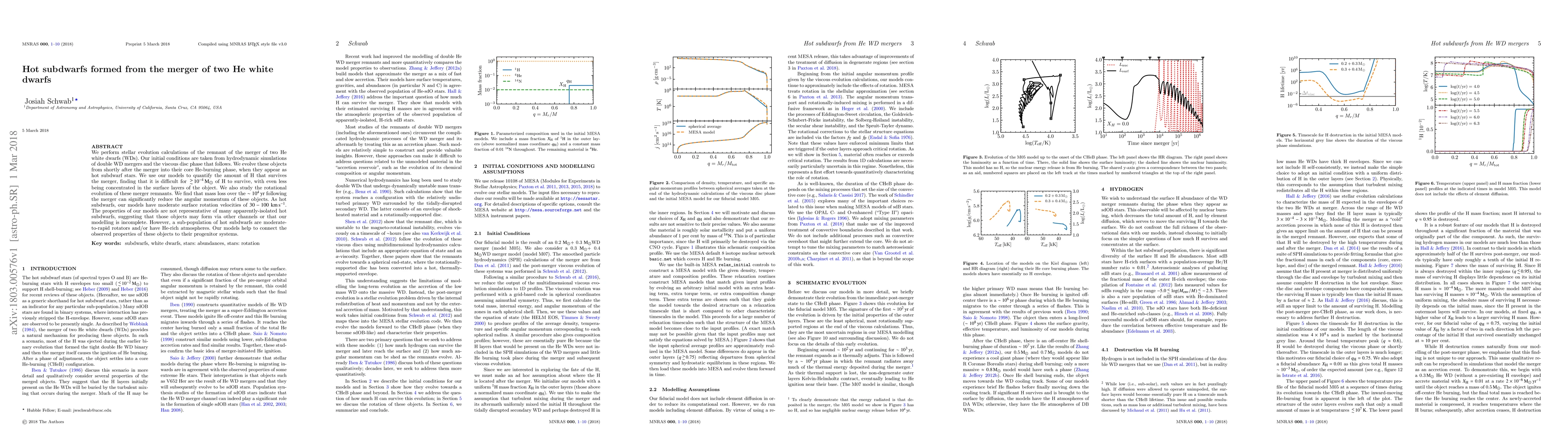 This paper investigates the formation of hot subdwarfs from the merger of two helium white dwarfs, finding that only a small amount of hydrogen survives post-merger. It also explores the rotational evolution of these remnants, showing significant angular momentum reduction due to mass loss, resulting in moderate surface rotation velocities.