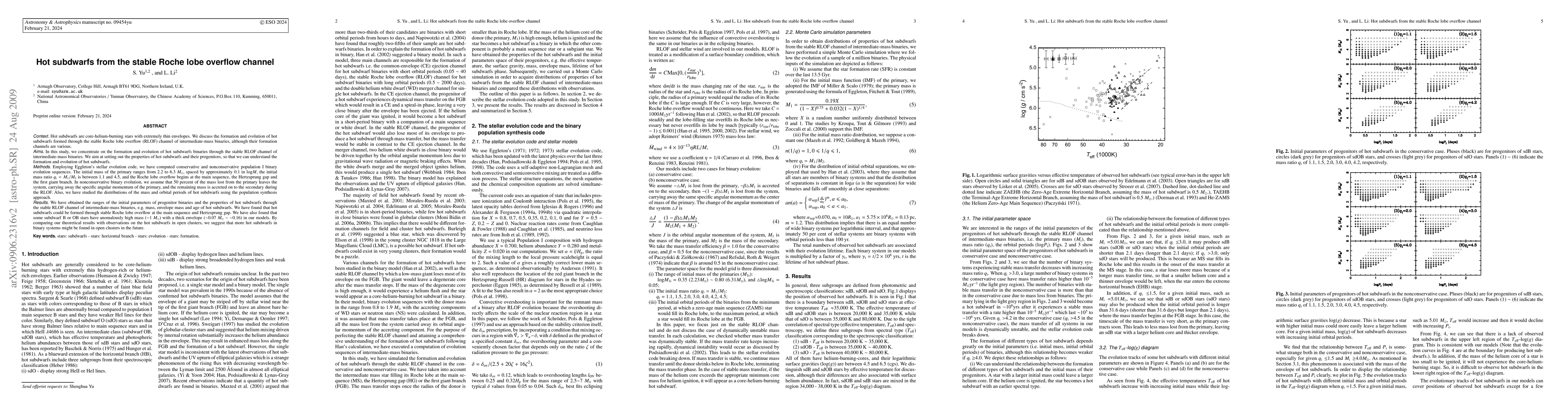 This study focuses on the formation and evolution of hot subdwarfs through the stable Roche lobe overflow (RLOF) channel of intermediate-mass binaries, determining the properties of hot subdwarfs and their progenitors.