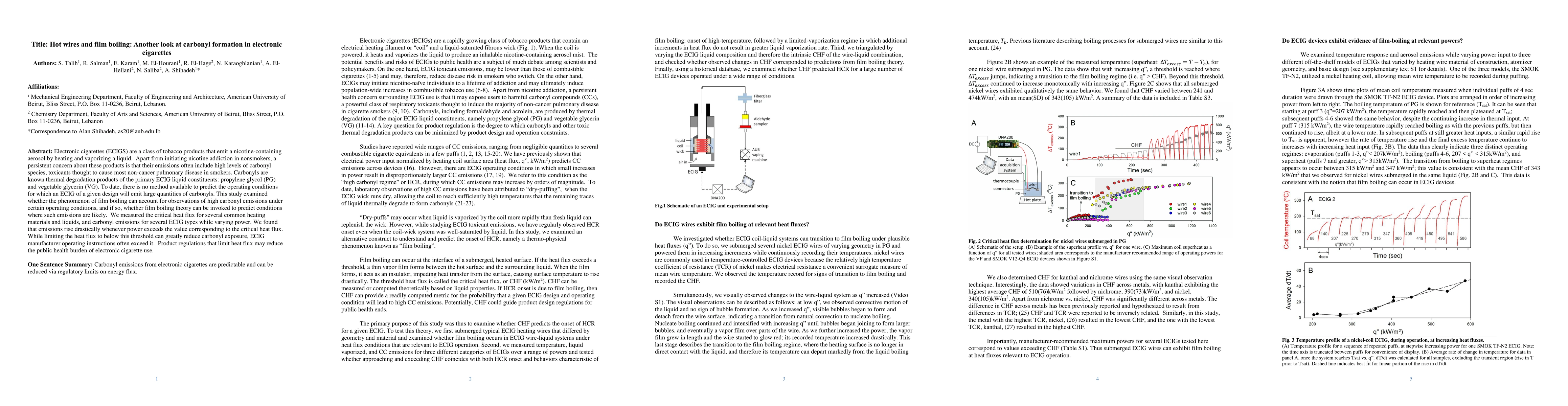 Electronic cigarettes (ECIGS) are a class of tobacco products that emit a nicotine-containing aerosol by heating and vaporizing a liquid. Apart from initiating nicotine addiction in nonsmokers, a persistent concern about these products is that their emissions often include high levels of carbonyl species, toxicants thought to cause most non-cancer pulmonary disease in smokers. Carbonyls are known thermal degradation products of the primary ECIG liquid constituents: propylene glycol (PG) and vegetable glycerin (VG). To date, there is no method available to predict the operating conditions for which an ECIG of a given design will emit large quantities of carbonyls. This study examined whether the phenomenon of film boiling can account for observations of high carbonyl emissions under certain operating conditions, and if so, whether film boiling theory can be invoked to predict conditions where such emissions are likely. We measured the critical heat flux for several common heating materials and liquids, and carbonyl emissions for several ECIG types while varying power. We found that emissions rise drastically whenever power exceeds the value corresponding to the critical heat flux. While limiting the heat flux to below this threshold can greatly reduce carbonyl exposure, ECIG manufacturer operating instructions often exceed it. Product regulations that limit heat flux may reduce the public health burden of electronic cigarette use.