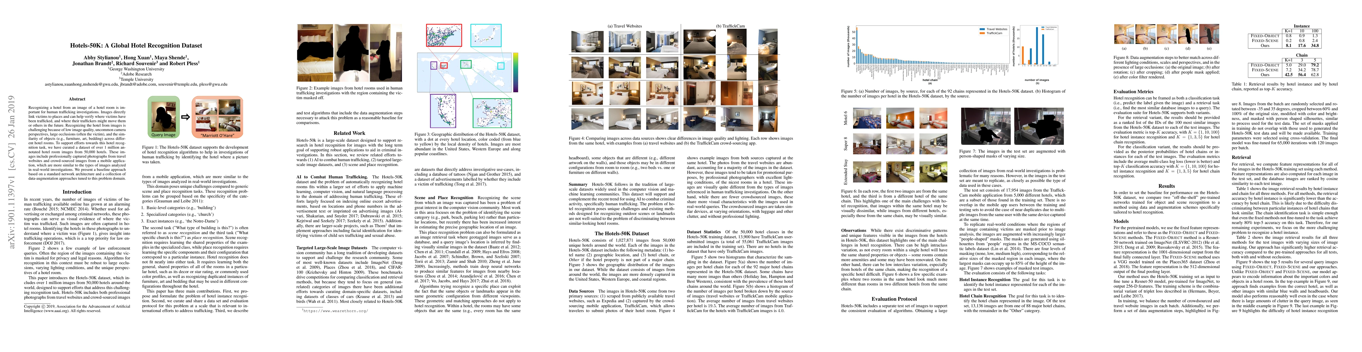 The research curated a dataset called Hotels-50K, consisting of over 1 million annotated hotel room images from 50,000 hotels globally, sourced from travel websites and a crowd-sourcing mobile application. A baseline approach using a standard network architecture and data-augmentation tailored to the problem domain was presented.