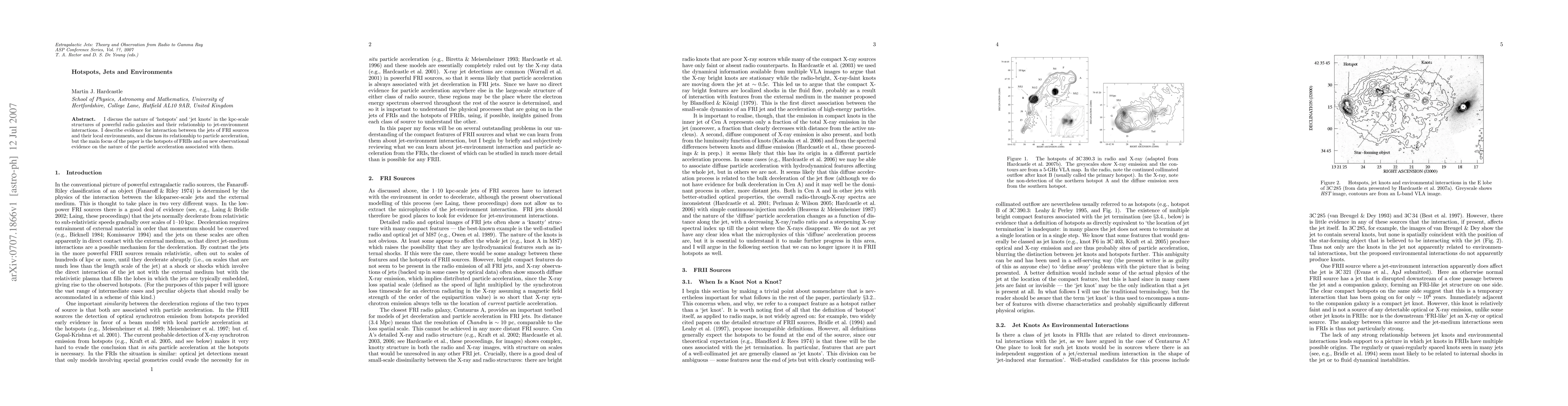 I discuss the nature of `hotspots' and `jet knots' in the kpc-scale structures of powerful radio galaxies and their relationship to jet-environment interactions. I describe evidence for interaction between the jets of FRI sources and their local environments, and discuss its relationship to particle acceleration, but the main focus of the paper is the hotspots of FRIIs and on new observational evidence on the nature of the particle acceleration associated with them.