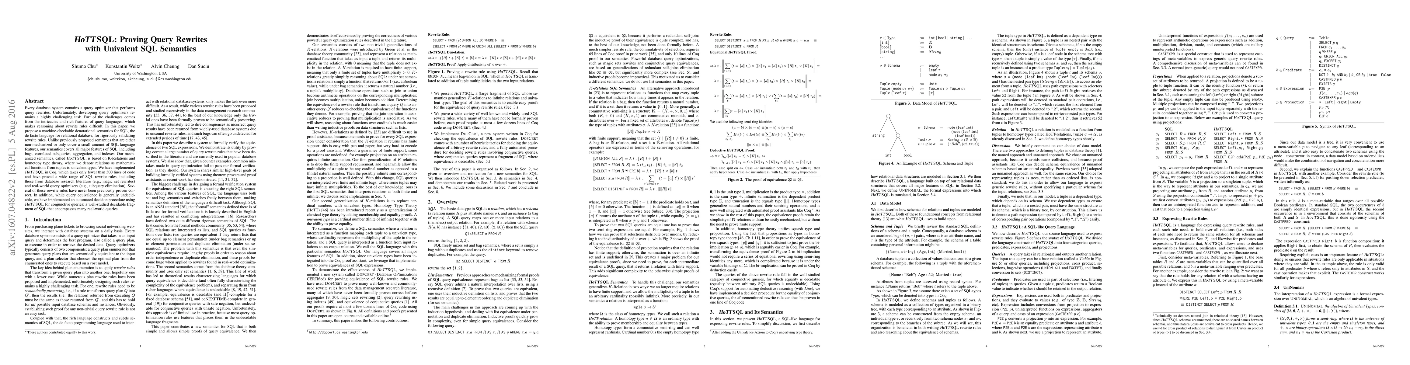 This paper introduces HoTTSQL, a mechanized denotational semantics for SQL based on homotopy type theory, to rigorously validate query rewrite rules. The implementation in Coq proves a wide range of SQL rewrite rules, including previously unverified ones, and provides an automated decision procedure for query equivalence in conjunctive queries.