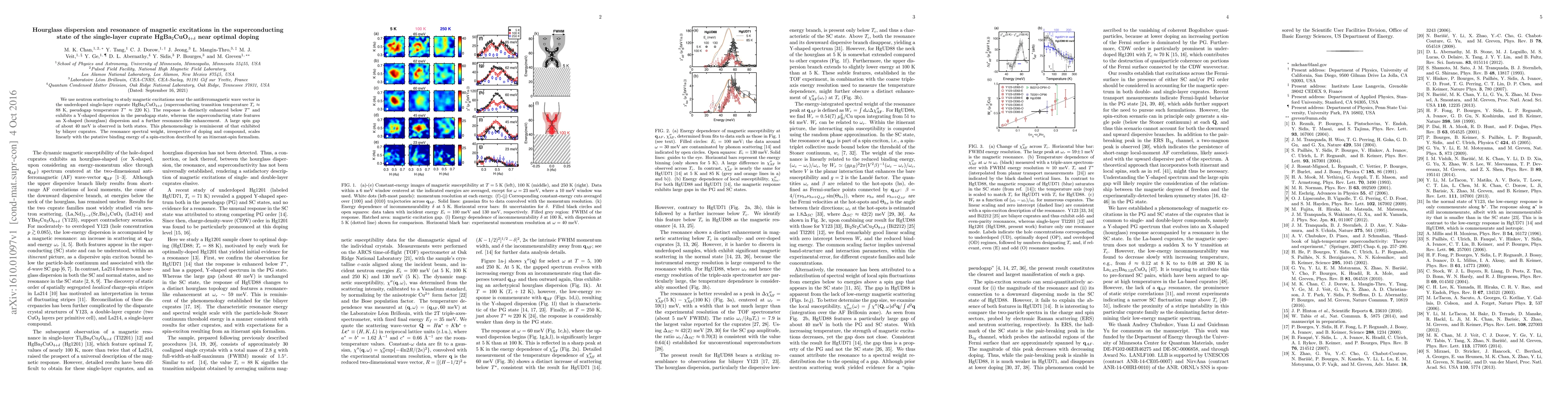 We use neutron scattering to study magnetic excitations near the antiferromagnetic wave vector in the underdoped single-layer cuprate HgBa2CuO4+{\delta} (superconducting transition temperature Tc ~ 88 K, pseudogap temperature T* ~ 220 K). The response is distinctly enhanced below T* and exhibits a Y-shaped dispersion in the pseudogap state, whereas the superconducting state features an X-shaped (hourglass) dispersion and a further resonance-like enhancement. A large spin gap of about 40 meV is observed in both states. This phenomenology is reminiscent of that exhibited by bilayer cuprates. The resonance spectral weight, irrespective of doping and compound, scales linearly with the putative binding energy of a spin-exciton described by an itinerant-spin formalism.