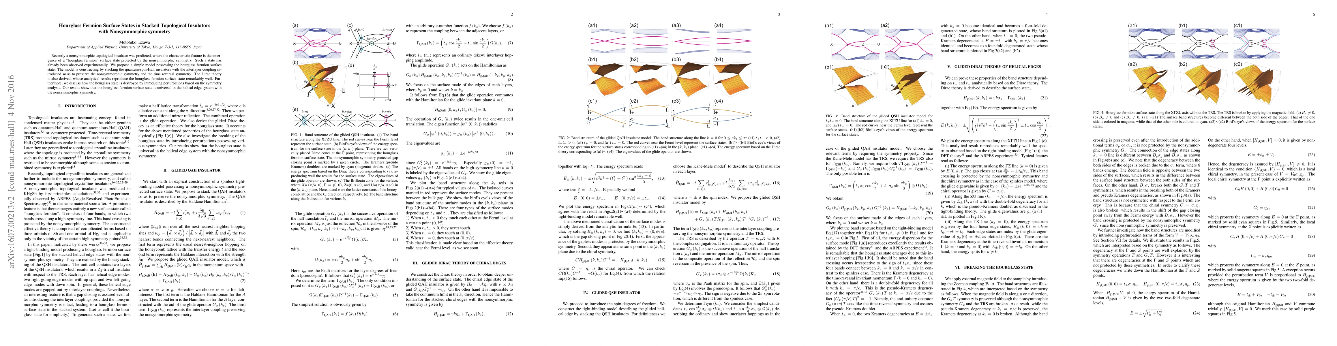 This paper proposes a model for a stacked topological insulator exhibiting a "hourglass fermion" surface state, protected by nonsymmorphic symmetry. The model incorporates quantum-spin-Hall insulators with interlayer coupling and reproduces the predicted surface state using Dirac theory.