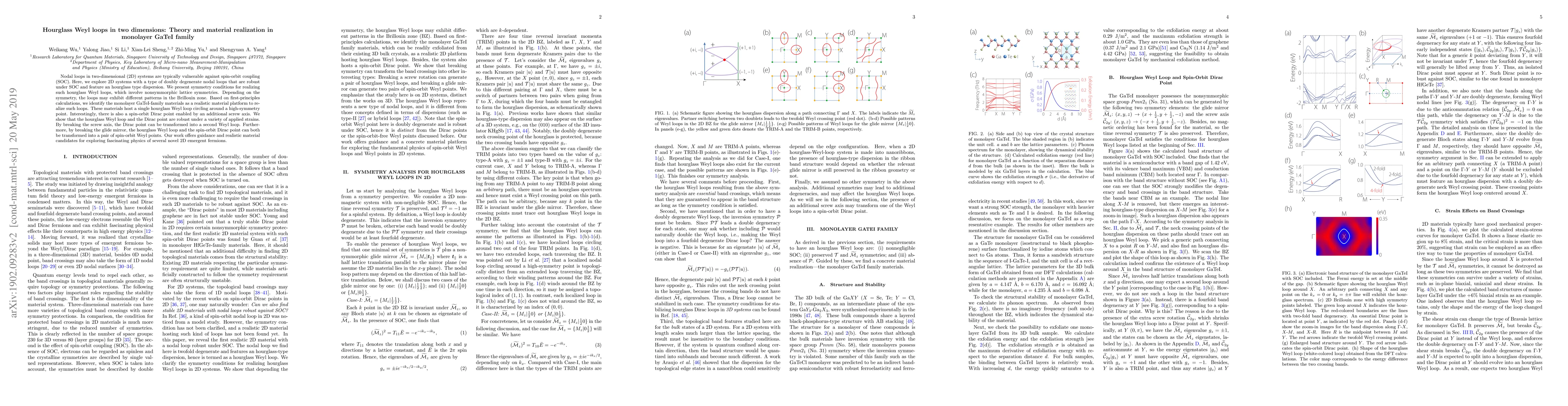 This paper explores the theoretical and material realization of hourglass Weyl loops in two-dimensional systems, demonstrating their robustness against spin-orbit coupling. It identifies monolayer GaTeI-family materials as a platform for these loops, showcasing their stability under various strains and transformations.