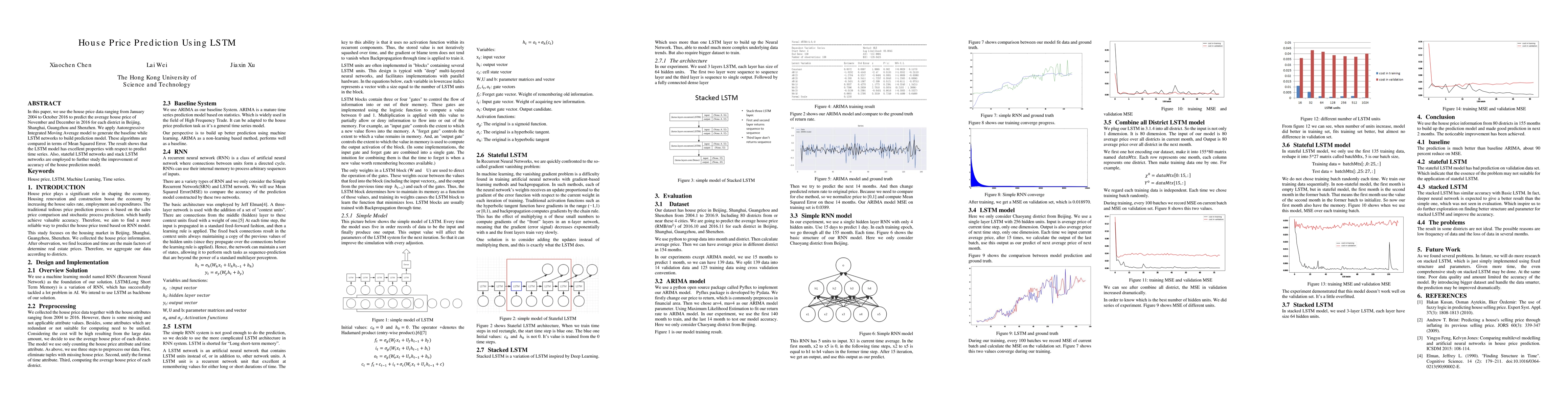 This paper explores house price prediction using LSTM networks, comparing them against an Autoregressive Integrated Moving Average model. The LSTM model demonstrates superior performance in predicting house prices for districts in Beijing, Shanghai, Guangzhou, and Shenzhen, as evidenced by lower Mean Squared Error.