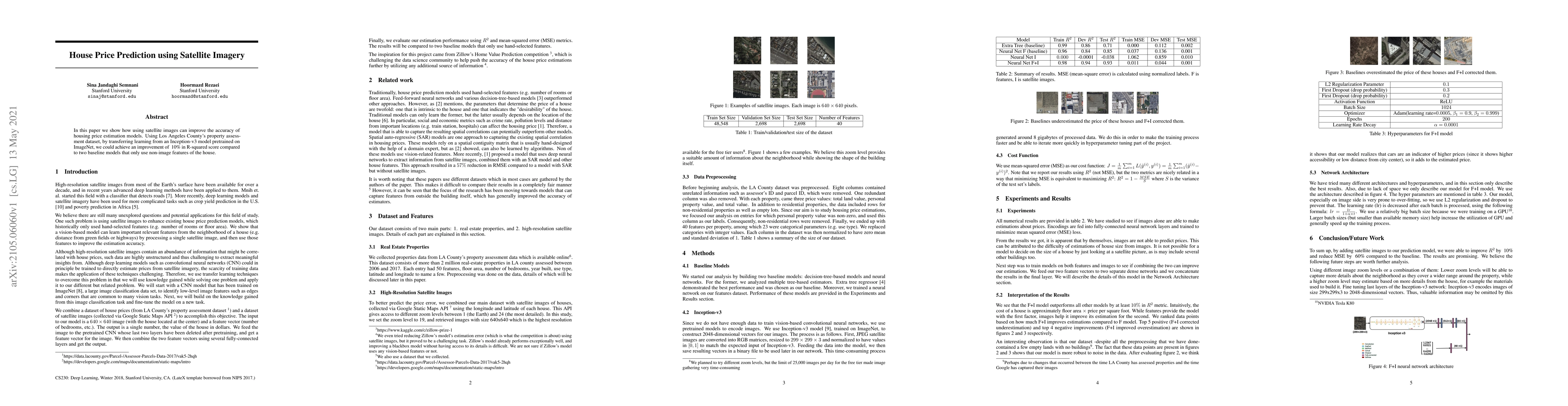 In this paper we show how using satellite images can improve the accuracy of housing price estimation models. Using Los Angeles County's property assessment dataset, by transferring learning from an Inception-v3 model pretrained on ImageNet, we could achieve an improvement of ~10% in R-squared score compared to two baseline models that only use non-image features of the house.