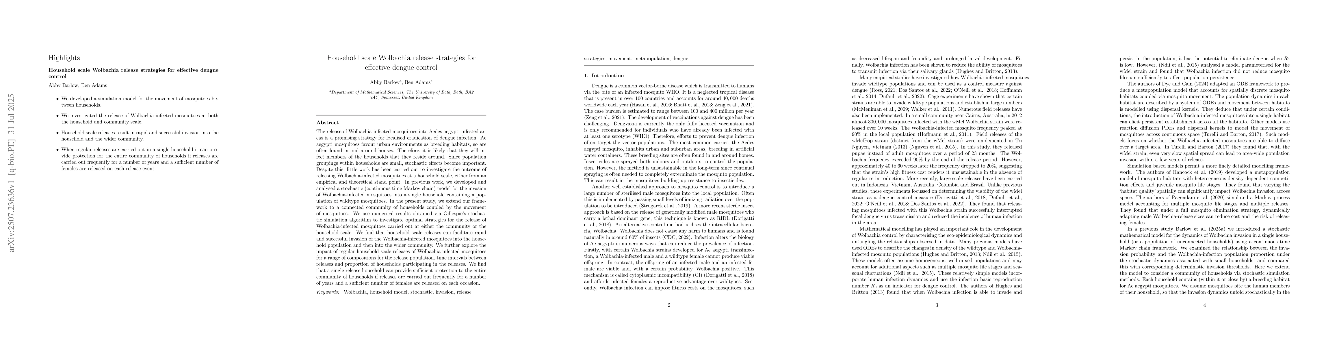 The release of Wolbachia-infected mosquitoes into Aedes aegypti infested areas is a promising strategy for localised eradication of dengue infection. Ae aegypti mosquitoes favour urban environments as breeding habitats, so are often found in and around houses. Therefore, it is likely that they will infect members of the households that they reside around. Since population groupings within households are small, stochastic effects become important. Despite this, little work has been carried out to investigate the outcome of releasing Wolbachia-infected mosquitoes at a household scale, either from an empirical and theoretical stand point. In previous work, we developed and analysed a stochastic (continuous time Markov chain) model for the invasion of Wolbachia-infected mosquitoes into a single household containing a population of wildtype mosquitoes. In the present study, we extend our framework to a connected community of households coupled by the movement of mosquitoes. We use numerical results obtained via Gillespie's stochastic simulation algorithm to investigate optimal strategies for the release of Wolbachia-infected mosquitoes carried out at either the community or the household scale. We find that household scale releases can facilitate rapid and successful invasion of the Wolbachia-infected mosquitoes into the household population and then into the wider community. We further explore the impact of regular household scale releases of Wolbachia-infected mosquitoes for a range of compositions for the release population, time intervals between releases and proportion of households participating in the releases. We find that a single release household can provide sufficient protection to the entire community of households if releases are carried out frequently for a number of years and a sufficient number of females are released on each occasion.