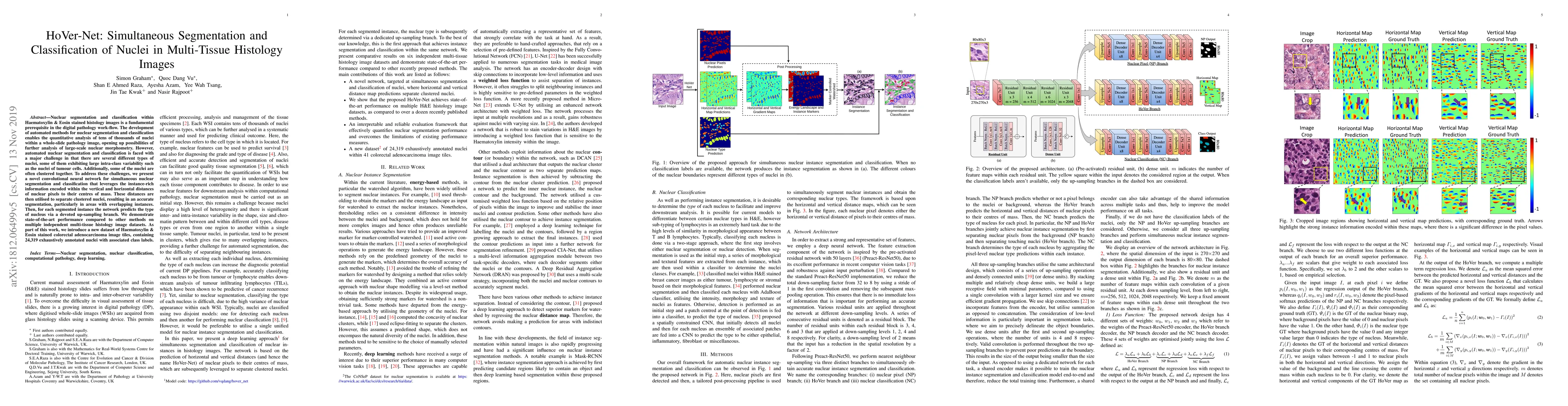 HoVer-Net presents a novel convolutional neural network for simultaneous segmentation and classification of nuclei in multi-tissue histology images, leveraging spatial information to accurately segment clustered nuclei and achieve state-of-the-art performance. The method also introduces a new annotated dataset for colorectal adenocarcinoma.