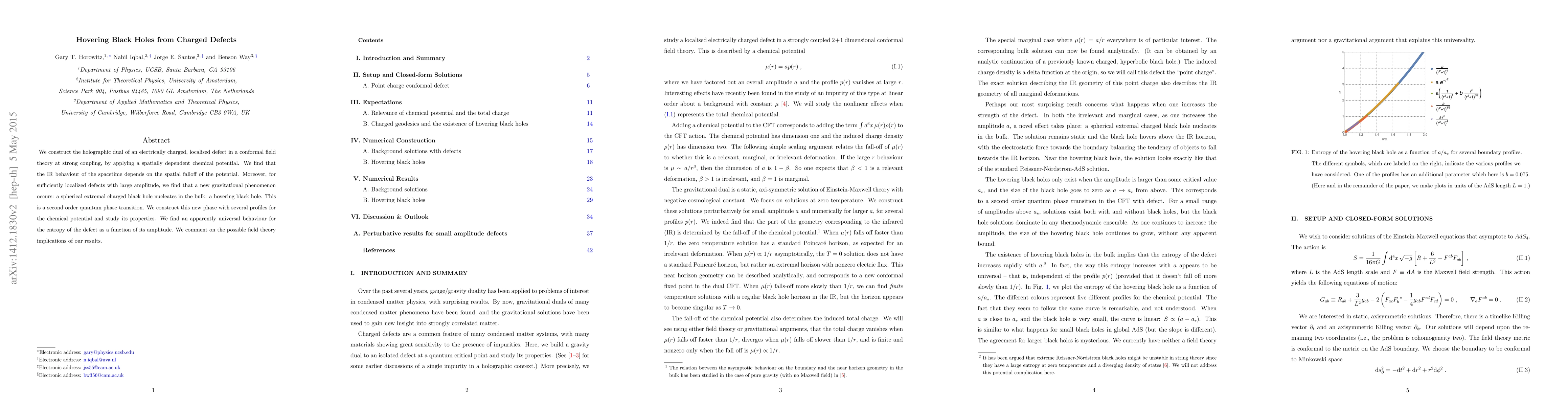 We construct the holographic dual of an electrically charged, localised defect in a conformal field theory at strong coupling, by applying a spatially dependent chemical potential. We find that the IR behaviour of the spacetime depends on the spatial falloff of the potential. Moreover, for sufficiently localized defects with large amplitude, we find that a new gravitational phenomenon occurs: a spherical extremal charged black hole nucleates in the bulk: a hovering black hole. This is a second order quantum phase transition. We construct this new phase with several profiles for the chemical potential and study its properties. We find an apparently universal behaviour for the entropy of the defect as a function of its amplitude. We comment on the possible field theory implications of our results.