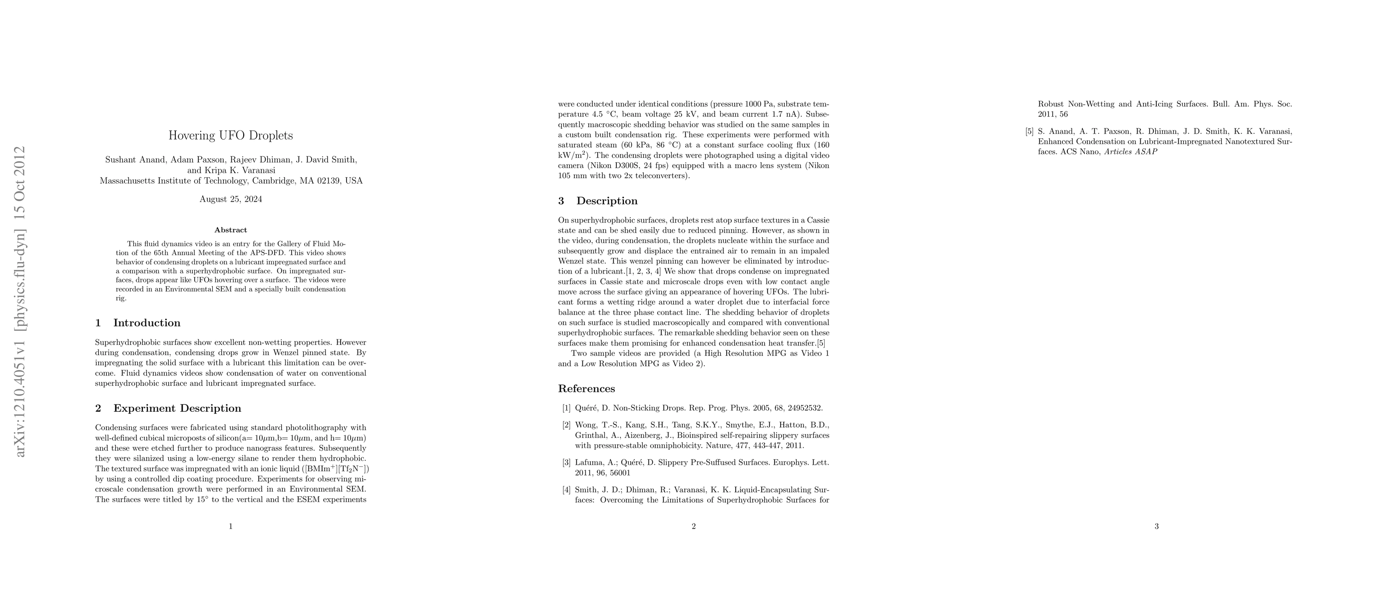 This fluid dynamics video is an entry for the Gallery of Fluid Motion of the 65th Annual Meeting of the APS-DFD. This video shows behavior of condensing droplets on a lubricant impregnated surface and a comparison with a superhydrophobic surface. On impregnated surfaces, drops appear like UFOs hovering over a surface. The videos were recorded in an Environmental SEM and a specially built condensation rig.