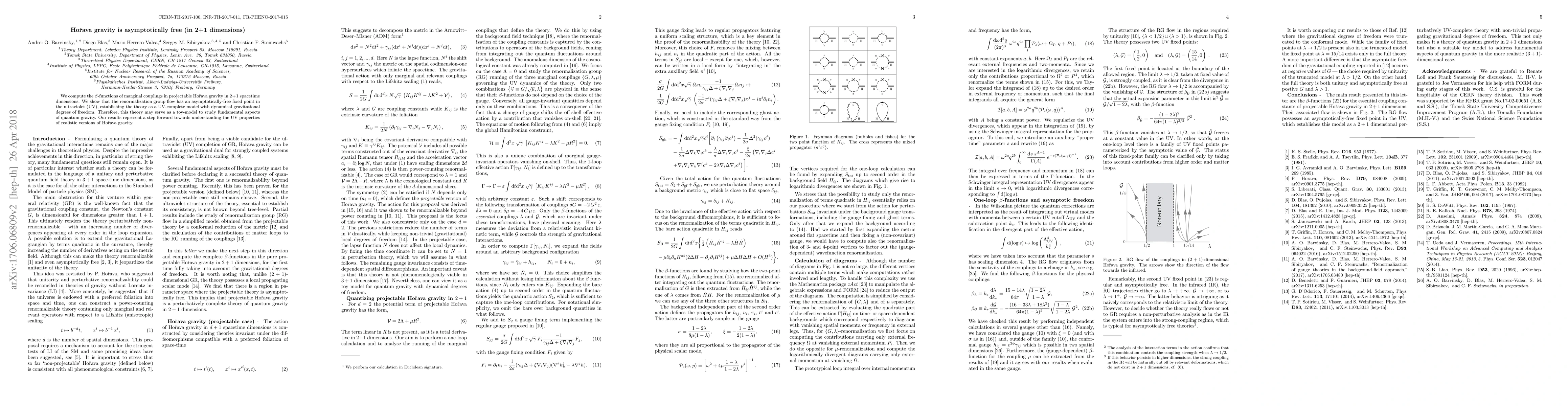 This paper demonstrates that projectable Hořava gravity in 2+1 dimensions possesses an asymptotically-free fixed point in the ultraviolet, indicating UV-completeness and potential as a model for studying quantum gravity. The findings advance the understanding of the theory's UV properties.