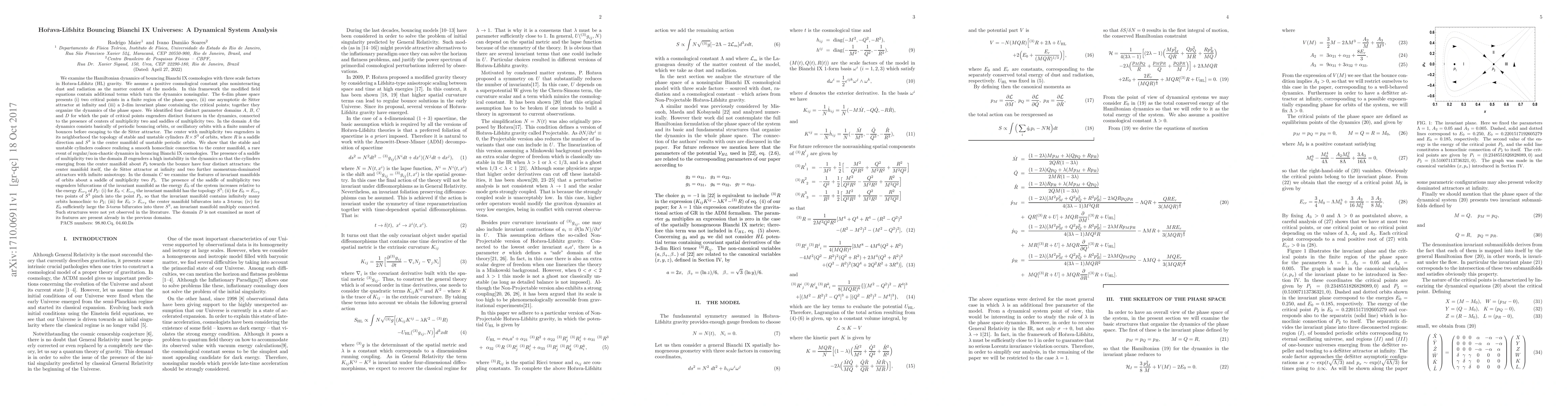 We examine the Hamiltonian dynamics of bouncing Bianchi IX cosmologies in Ho\v{r}ava-Lifshitz gravity. The $6$-dim phase space presents two critical points, one asymptotic de Sitter attractor at infinity and a $2$-dim invariant plane. We identified four distinct parameter domains $A$, $B$, $C$ and $D$ for which the pair of critical points engenders distinct features in the dynamics. In the domain $A$ the dynamics consists basically of periodic bouncing orbits, or oscillatory orbits with a finite number of bounces. The center with multiplicity two engenders in its neighborhood the topology of stable and unstable cylinders $R \times S^3$ of orbits. We show that the stable and unstable cylinders coalesce realizing a smooth homoclinic connection to the center manifold, a rare event of regular/non-chaotic dynamics in bouncing Bianchi IX cosmologies. The presence of a saddle of multiplicity two in the domain $B$ engenders a high instability in the dynamics so that the cylinders emerging from the center manifold towards the bounce have four distinct attractors: the center manifold itself, the de Sitter attractor at infinity and two further momentum-dominated attractors with infinite anisotropy. In the domain $C$ we examine the features of invariant manifolds of orbits about a saddle of multiplicity two. The presence of the saddle of multiplicity two engenders bifurcations of the invariant manifold as the energy $E_0$ of the system increases relative to the energy $E_{cr}$ providing structures that were not yet observed in the literature. The domain $D$ is not examined as most of its features are present already in the previous domains.