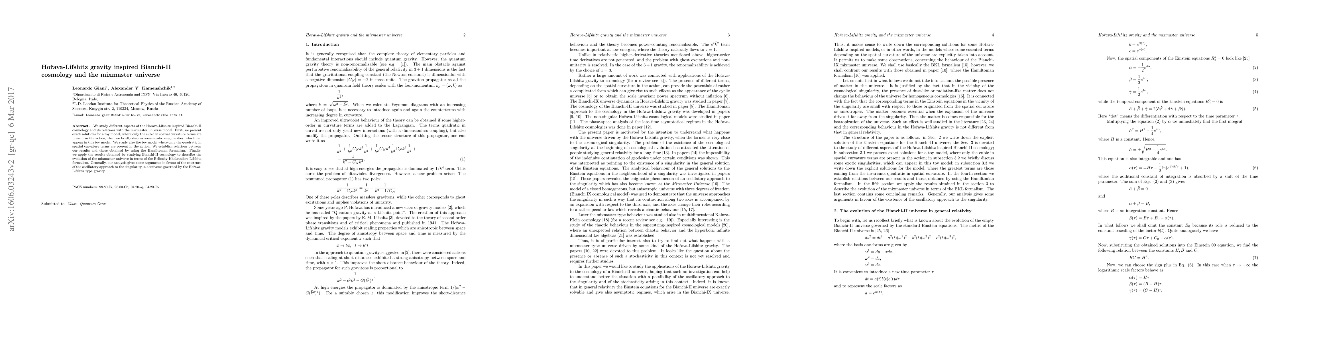 This paper explores Hořava-Lifshitz inspired Bianchi-II cosmology and its connection to the mixmaster universe, presenting exact solutions for models with cubic and quadratic spatial curvature terms and discussing exotic singularities. The study supports an oscillatory approach to singularities in Hořava-Lifshitz gravity.