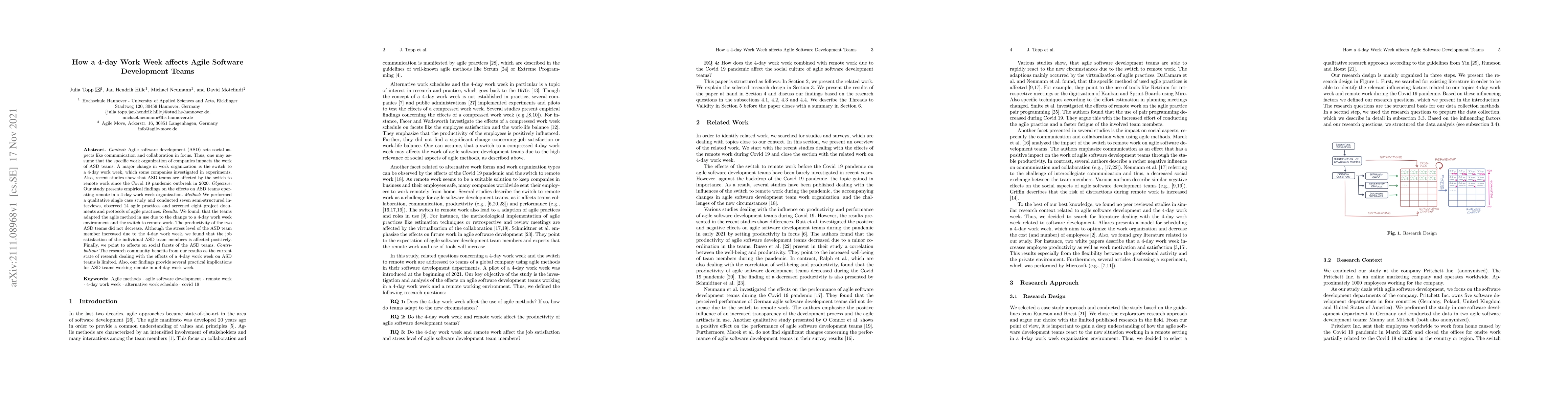 This study investigates how agile software development teams adapt to a 4-day work week while working remotely, revealing that productivity remained stable despite increased stress, and job satisfaction improved, with notable social impacts on team dynamics. The findings offer valuable insights for agile teams transitioning to shorter workweeks.