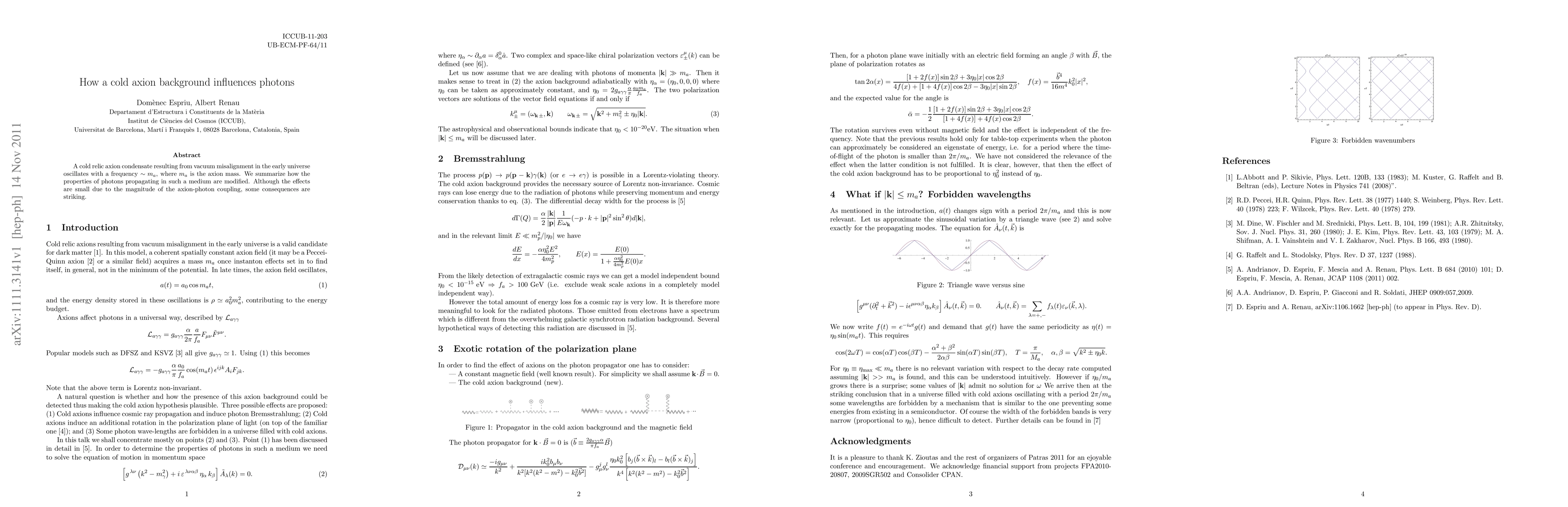 This paper investigates how a cold axion background from the early universe affects the propagation of photons, revealing subtle yet significant modifications to photon properties due to the axion-photon coupling, despite the small coupling strength.