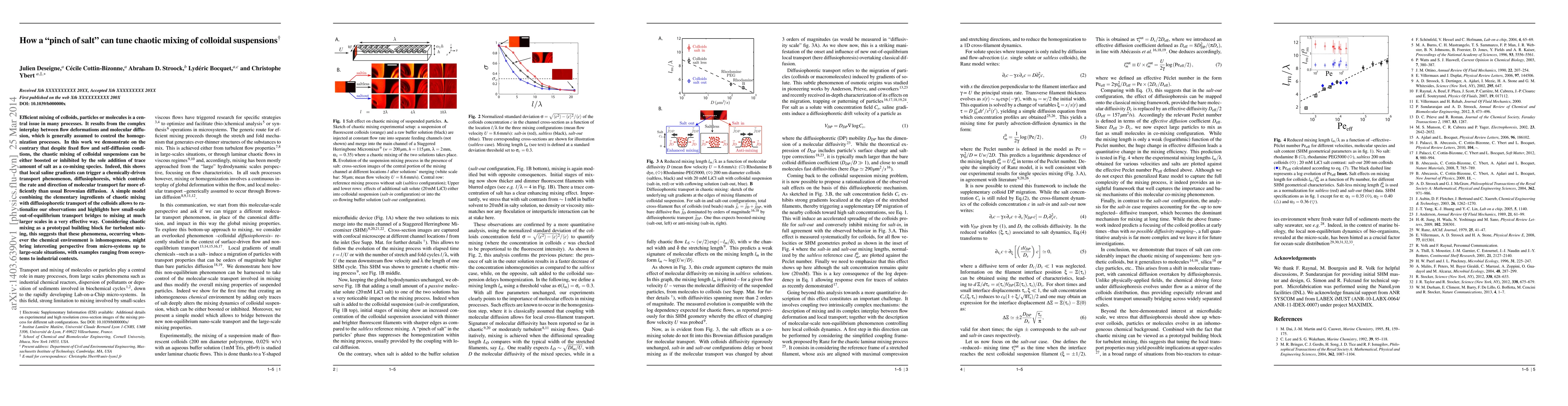 Efficient mixing of colloids, particles or molecules is a central issue in many processes. It results from the complex interplay between flow deformations and molecular diffusion, which is generally assumed to control the homogenization processes. In this work we demonstrate on the contrary that despite fixed flow and self-diffusion conditions, the chaotic mixing of colloidal suspensions can be either boosted or inhibited by the sole addition of trace amount of salt as a co-mixing species. Indeed, this shows that local saline gradients can trigger a chemically-driven transport phenomenon, diffusiophoresis, which controls the rate and direction of molecular transport far more efficiently than usual Brownian diffusion. A simple model combining the elementary ingredients of chaotic mixing with diffusiophoretic transport of the colloids allows to rationalize our observations and highlights how small-scale out-of-equilibrium transport bridges to mixing at much larger scales in a very effective way. Considering chaotic mixing as a prototypal building block for turbulent mixing, this suggests that these phenomena, occurring whenever the chemical environment is inhomogeneous, might bring interesting perspective from micro-systems up to large-scale situations, with examples ranging from ecosystems to industrial contexts.