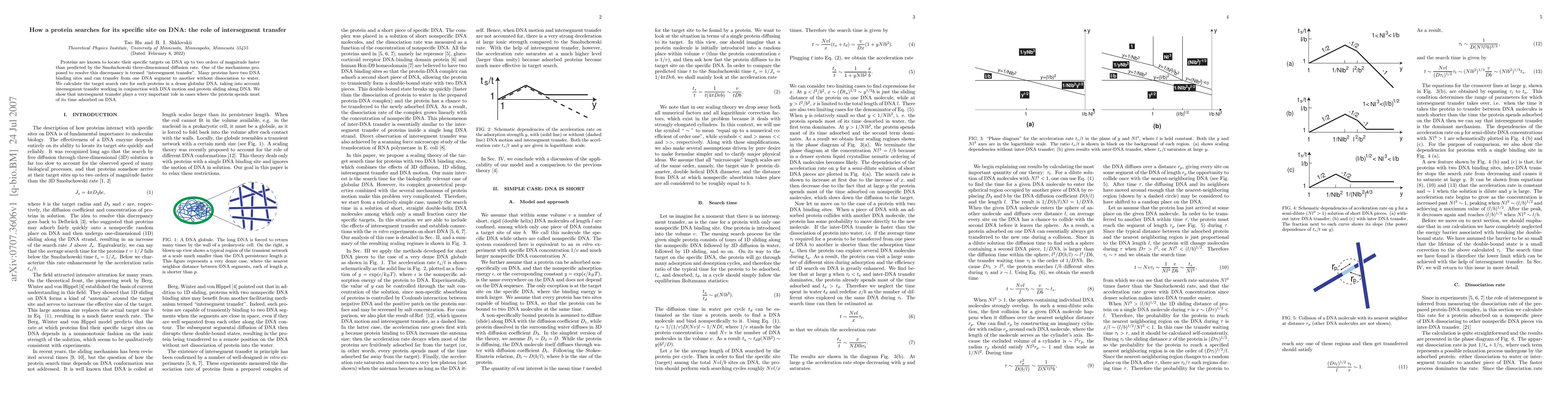This paper investigates how proteins rapidly locate their specific sites on DNA, proposing that "intersegment transfer" significantly enhances this process. The study demonstrates that proteins with two DNA binding sites can move between segments without dissociating, thus improving search efficiency in dense DNA environments.