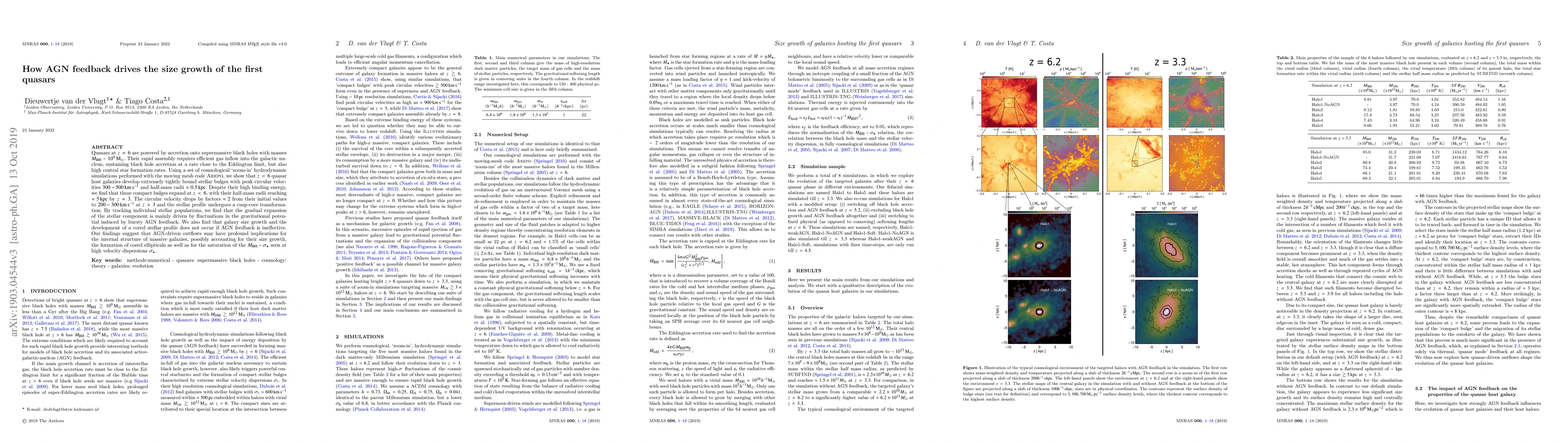 Quasars at $z \,=\, 6$ are powered by accretion onto supermassive black holes with masses $M_{\rm BH} \sim 10^9 \rm \, M_{\odot}$. Their rapid assembly requires efficient gas inflow into the galactic nucleus, sustaining black hole accretion at a rate close to the Eddington limit, but also high central star formation rates. Using a set of cosmological 'zoom-in' hydrodynamic simulations performed with the moving mesh code Arepo, we show that $z \,=\, 6$ quasar host galaxies develop extremely tightly bound stellar bulges with peak circular velocities $300$ - $500$ km s$^{-1}$ and half-mass radii $\approx 0.5 \, \rm kpc$. Despite their high binding energy, we find that these compact bulges expand at $z \, < \, 6$, with their half-mass radii reaching $ \approx 5$ kpc by $z \, = \, 3$. The circular velocity drops by factors $\approx 2$ from their initial values to $200$ - $300$ km s$^{-1}$ at $z \, \approx \, 3$ and the stellar profile undergoes a cusp-core transformation. By tracking individual stellar populations, we find that the gradual expansion of the stellar component is mainly driven by fluctuations in the gravitational potential induced by bursty AGN feedback. We also find that galaxy size growth and the development of a cored stellar profile does not occur if AGN feedback is ineffective. Our findings suggest that AGN-driven outflows may have profound implications for the internal structure of massive galaxies, possibly accounting for their size growth, the formation of cored ellipticals as well as for the saturation of the $M_{\rm BH}$ - $\sigma_{\star}$ seen at high velocity dispersions $\sigma_{\star}$.