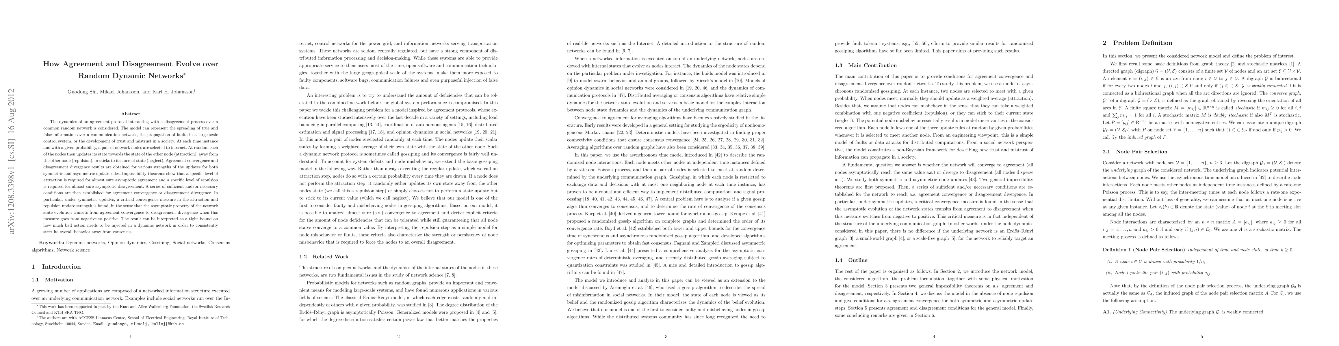 This paper explores the dynamics of agreement and disagreement processes on random dynamic networks, showing that specific levels of attraction and repulsion are necessary for convergence to agreement or divergence to disagreement. It establishes critical thresholds for these interactions, providing insight into how much "bad action" is needed to steer network behavior away from consensus.