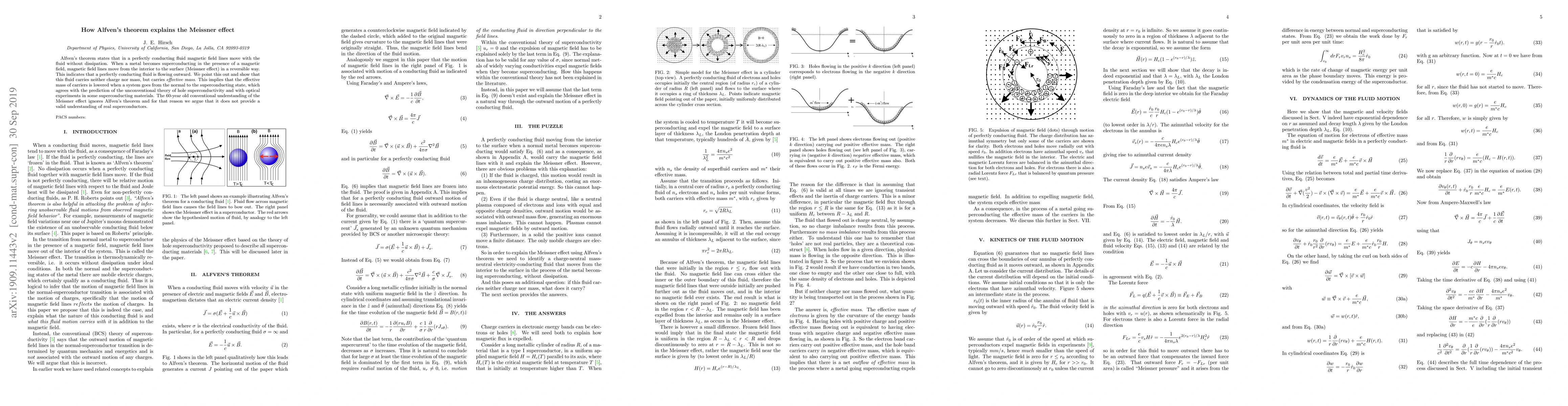 Alfven's theorem states that in a perfectly conducting fluid magnetic field lines move with the fluid without dissipation. When a metal becomes superconducting in the presence of a magnetic field, magnetic field lines move from the interior to the surface (Meissner effect) in a reversible way. This indicates that a perfectly conducting fluid is flowing outward. We point this out and show that this fluid carries neither charge nor mass, but carries $effective$ $mass$. This implies that the effective mass of carriers is lowered when a system goes from the normal to the superconducting state, which agrees with the prediction of the unconventional theory of hole superconductivity and with optical experiments in some superconducting materials. The 60-year old conventional understanding of the Meissner effect ignores Alfven's theorem and for that reason we argue that it does not provide a valid understanding of real superconductors.