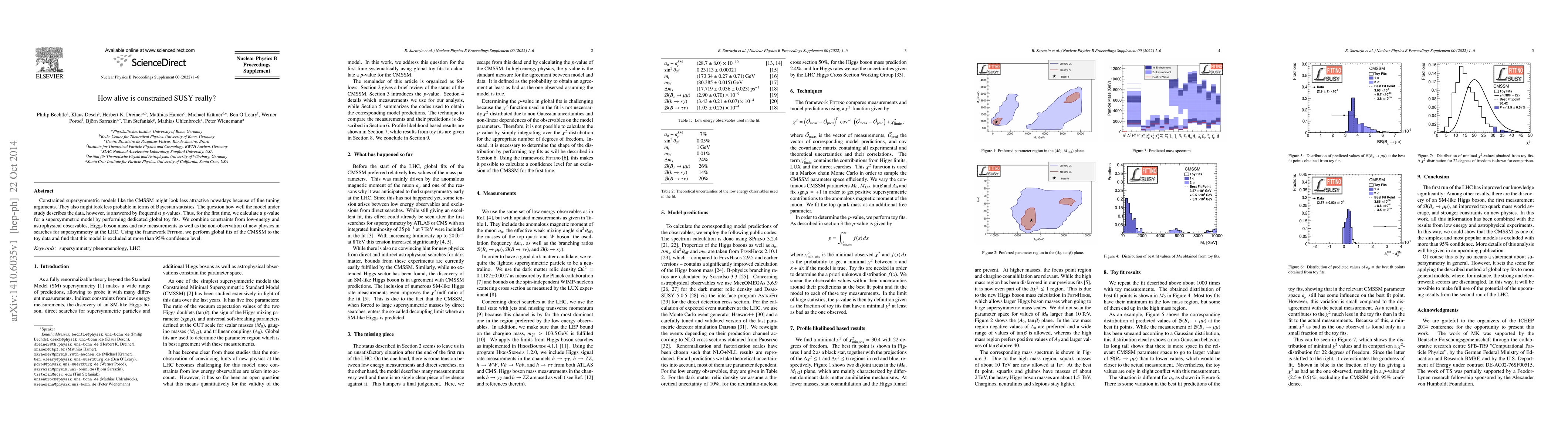 Constrained supersymmetric models like the CMSSM might look less attractive nowadays because of fine tuning arguments. They also might look less probable in terms of Bayesian statistics. The question how well the model under study describes the data, however, is answered by frequentist p-values. Thus, for the first time, we calculate a p-value for a supersymmetric model by performing dedicated global toy fits. We combine constraints from low-energy and astrophysical observables, Higgs boson mass and rate measurements as well as the non-observation of new physics in searches for supersymmetry at the LHC. Using the framework Fittino, we perform global fits of the CMSSM to the toy data and find that this model is excluded at more than 95% confidence level.
