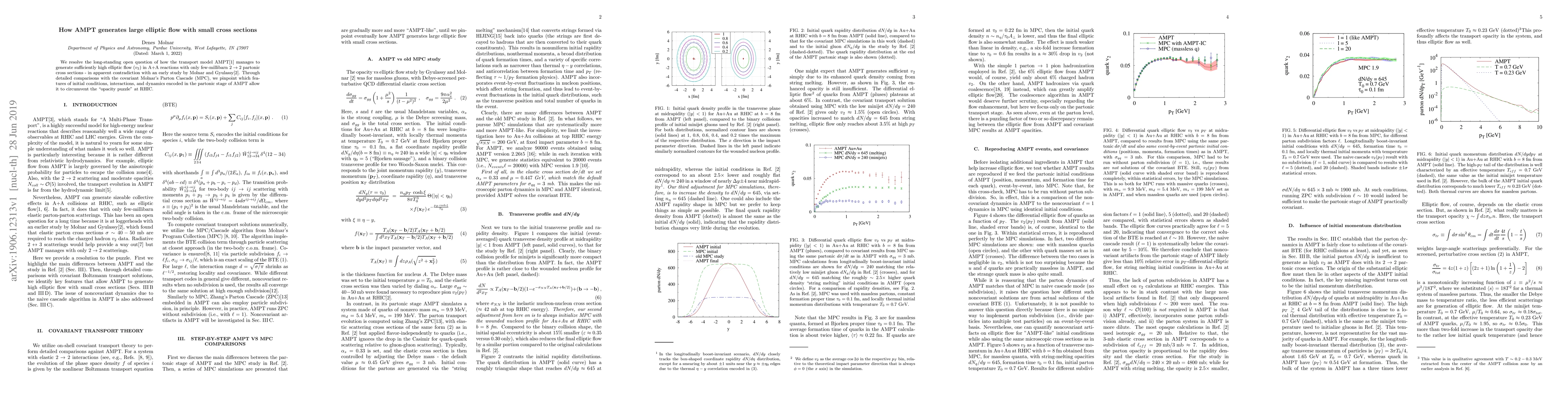 We resolve the long-standing open question of how the transport model AMPT manages to generate sufficiently high elliptic flow (v2) in A+A reactions with only few-millibarn 2->2 partonic cross sections - in apparent contradiction with an early study by Molnar and Gyulassy. Through detailed comparisons with the covariant Molnar's Parton Cascade (MPC), we pinpoint which features of initial conditions, interactions, and dynamics encoded in the partonic stage of AMPT allow it to circumvent the "opacity puzzle" at RHIC.