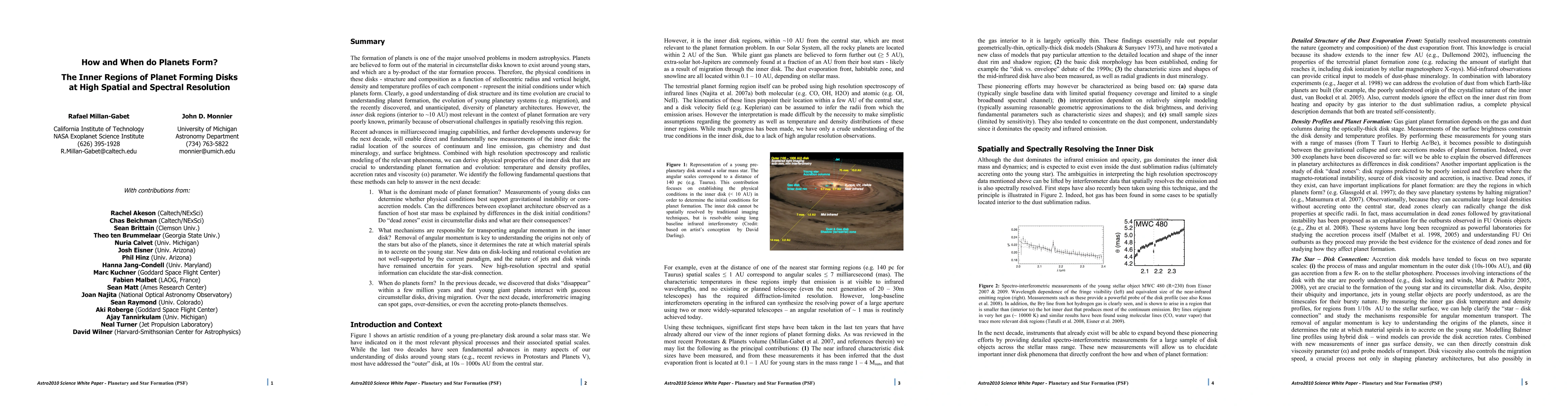 The formation of planets is one of the major unsolved problems in modern astrophysics. Planets are believed to form out of the material in circumstellar disks known to exist around young stars, and which are a by-product of the star formation process. Therefore, the physical conditions in these disks - structure and composition as a function of stellocentric radius and vertical height, density and temperature profiles of each component - represent the initial conditions under which planets form. Clearly, a good understanding of disk structure and its time evolution are crucial to understanding planet formation, the evolution of young planetary systems (e.g. migration), and the recently discovered, and unanticipated, diversity of planetary architectures. However, the inner disk regions (interior to ~10 AU) most relevant in the context of planet formation are very poorly known, primarily because of observational challenges in spatially resolving this region. In this contribution we discuss opportunities for the next decade from spectrally and spatially resolved observations, and from direct imaging, using infrared long baseline interferometry.