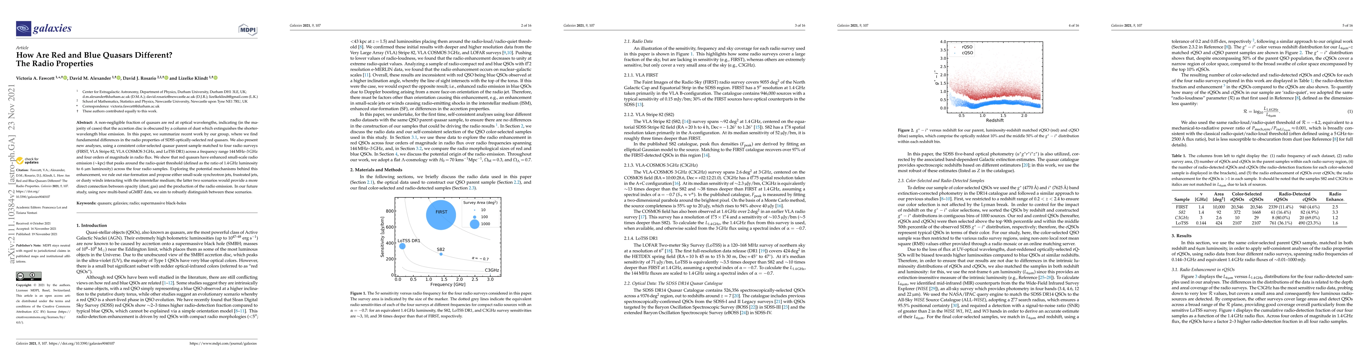 This paper investigates the radio properties of red and blue quasars, finding that red quasars exhibit enhanced small-scale radio emission, likely due to small-scale synchrotron jets, frustrated jets, or dusty winds interacting with the interstellar medium, rather than star-formation. Future studies aim to distinguish between these mechanisms using new data.