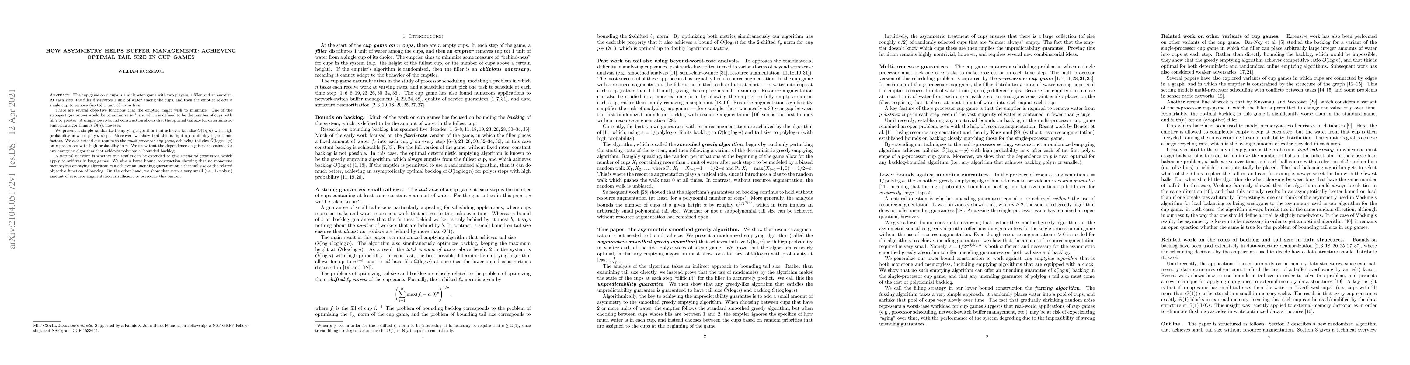 The cup game on $n$ cups is a multi-step game with two players, a filler and an emptier. At each step, the filler distributes $1$ unit of water among the cups, and then the emptier selects a single cup to remove (up to) $1$ unit of water from. There are several objective functions that the emptier might wish to minimize. One of the strongest guarantees would be to minimize tail size, which is defined to be the number of cups with fill $2$ or greater. A simple lower-bound construction shows that the optimal tail size for deterministic emptying algorithms is $\Theta(n)$, however. We present a simple randomized emptying algorithm that achieves tail size $\tilde{O}(\log n)$ with high probability in $n$ for $\operatorname{poly} n$ steps. Moreover, we show that this is tight up to doubly logarithmic factors. We also extend our results to the multi-processor cup game, achieving tail size $\tilde{O}(\log n + p)$ on $p$ processors with high probability in $n$. We show that the dependence on $p$ is near optimal for any emptying algorithm that achieves polynomial-bounded backlog. A natural question is whether our results can be extended to give unending guarantees, which apply to arbitrarily long games. We give a lower bound construction showing that no monotone memoryless emptying algorithm can achieve an unending guarantee on either tail size or the related objective function of backlog. On the other hand, we show that even a very small (i.e., $1 / \operatorname{poly} n$) amount of resource augmentation is sufficient to overcome this barrier.