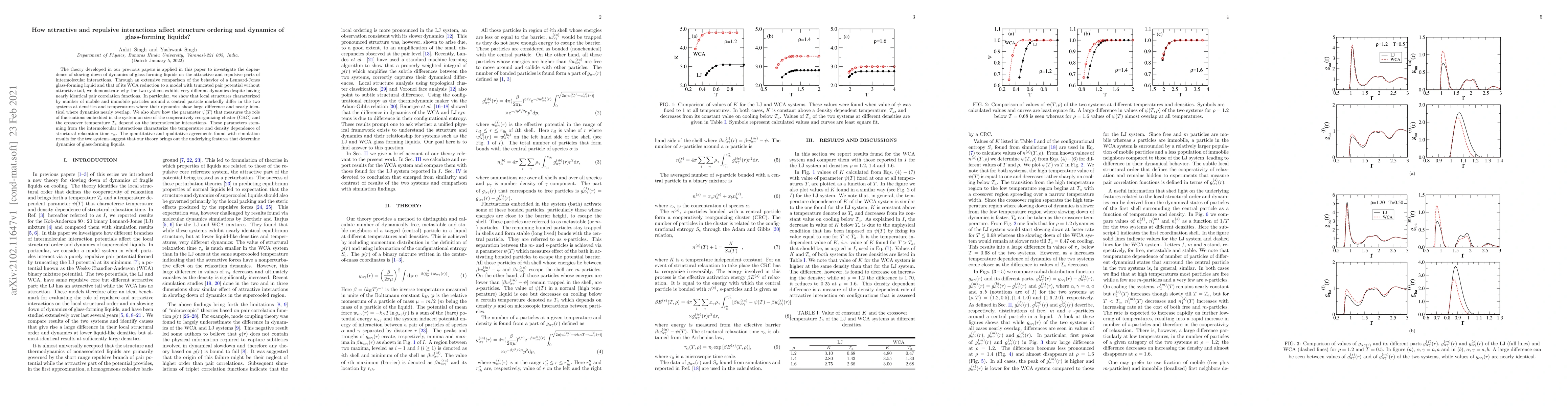 This paper applies previous theoretical work to explore how attractive and repulsive intermolecular interactions influence the dynamics and structure ordering of glass-forming liquids. It reveals significant differences in dynamics between a Lennard-Jones liquid and its WCA model, highlighting the role of local structures and fluctuations in determining the relaxation time and cooperative reorganizing cluster size.