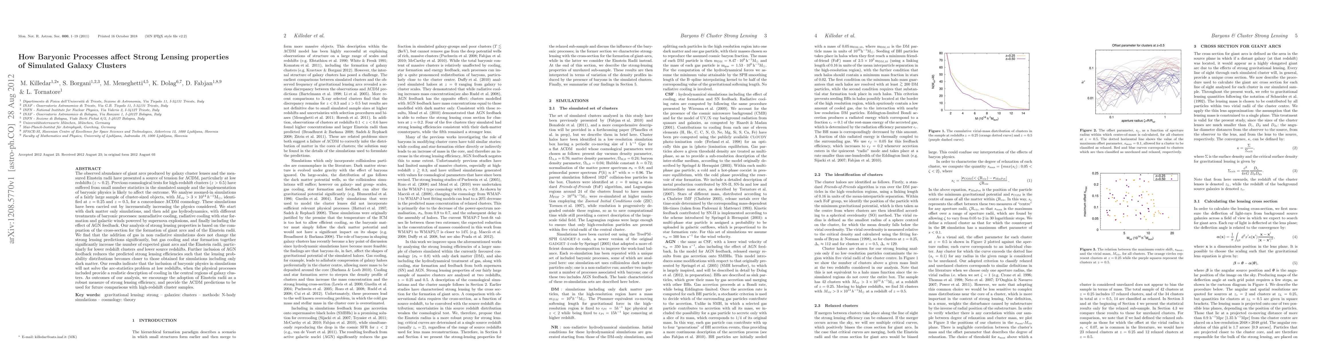 This study investigates how baryonic processes impact the strong lensing properties of simulated galaxy clusters. Adding gas cooling and star formation significantly increases the number of predicted giant arcs and Einstein radii, while AGN feedback reduces these predictions, bringing them closer to dark matter-only simulations. Baryonic physics does not resolve the tension in low-redshift arc statistics.