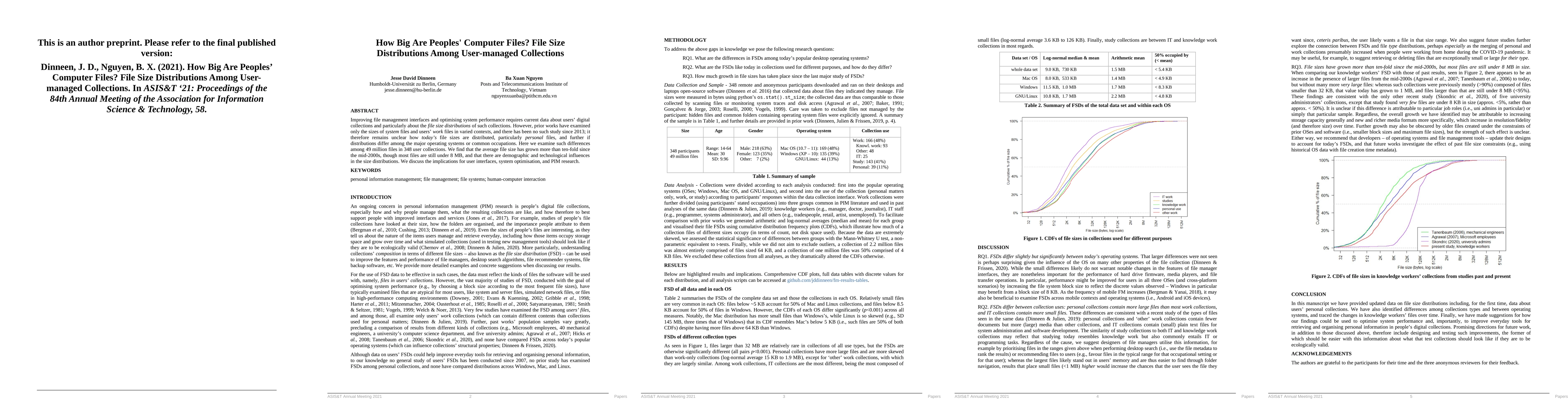 Improving file management interfaces and optimising system performance requires current data about users' digital collections and particularly about the file size distributions of such collections. However, prior works have examined only the sizes of system files and users' work files in varied contexts, and there has been no such study since 2013; it therefore remains unclear how today's file sizes are distributed, particularly personal files, and further if distributions differ among the major operating systems or common occupations. Here we examine such differences among 49 million files in 348 user collections. We find that the average file size has grown more than ten-fold since the mid-2000s, though most files are still under 8 MB, and that there are demographic and technological influences in the size distributions. We discuss the implications for user interfaces, system optimisation, and PIM research.