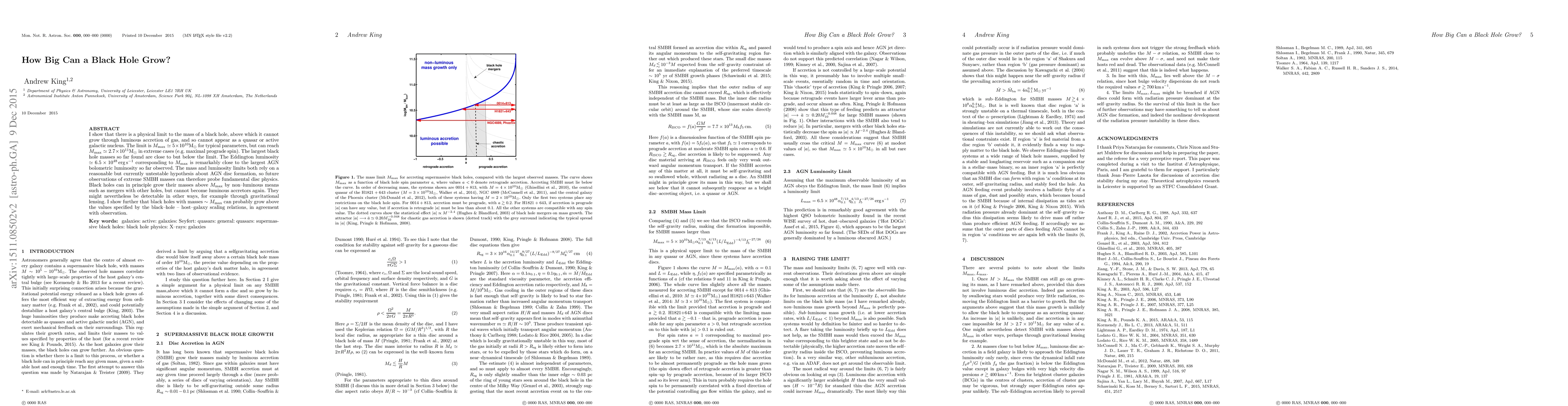 This paper establishes a physical limit for black hole mass growth via luminous accretion, capping at approximately 5x10^{10}M_sun, with extreme cases reaching up to 2.7x10^{11}M_sun. Black holes exceeding this limit cannot appear as quasars or active galactic nuclei.