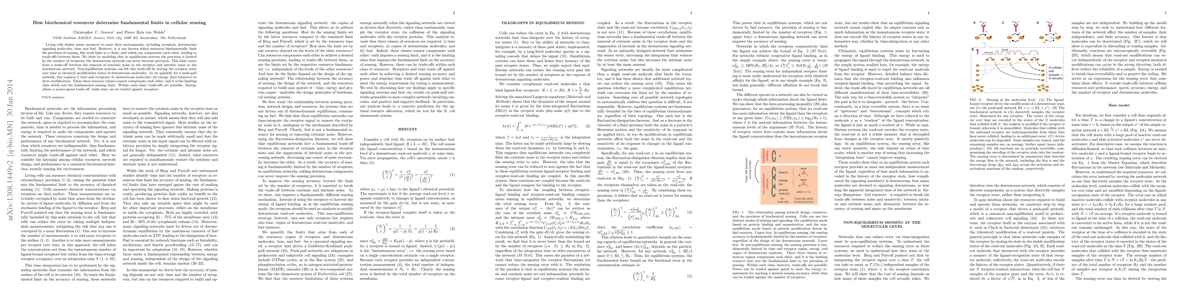 Living cells deploy many resources to sense their environments, including receptors, downstream signaling molecules, time and fuel. However, it is not known which resources fundamentally limit the precision of sensing, like weak links in a chain, and which can compensate each other, leading to trade-offs between them. We show by modeling that in equilibrium systems the precision is limited by the number of receptors; the downstream network can never increase precision. This limit arises from a trade-off between the removal of extrinsic noise in the receptor and intrinsic noise in the downstream network. Non-equilibrium systems can lift this trade-off by storing the receptor state over time in chemical modification states of downstream molecules. As we quantify for a push-pull network, this requires i) time and receptors; ii) downstream molecules; iii) energy (fuel turnover) to drive modification. These three resource classes cannot compensate each other, and it is the limiting class which sets the fundamental sensing limit. Within each class, trade-offs are possible. Energy allows a power-speed trade-off, while time can be traded against receptors.