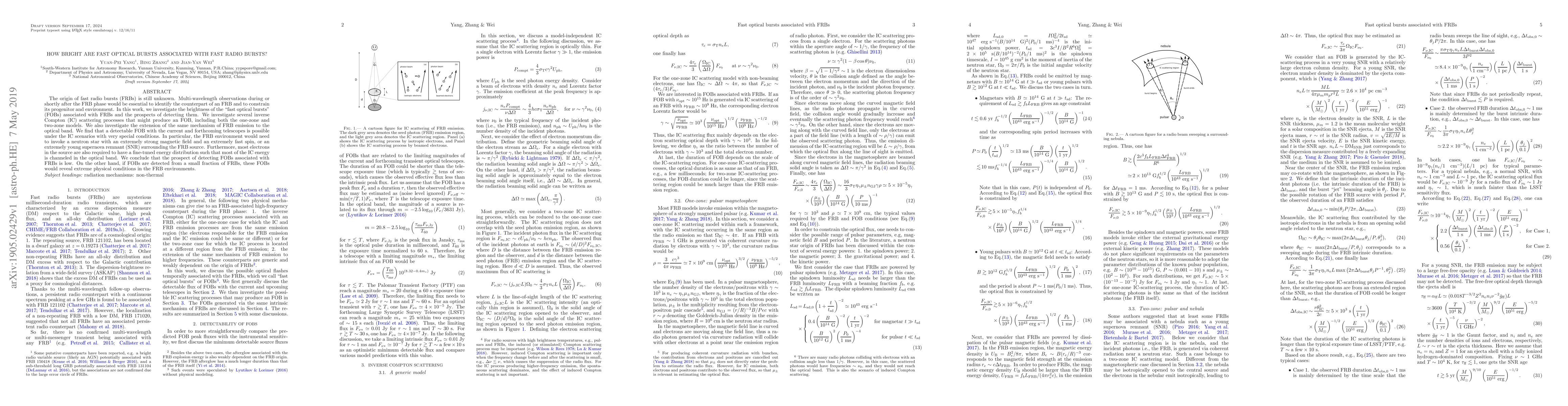 The origin of fast radio bursts (FRBs) is still unknown. Multi-wavelength observations during or shortly after the FRB phase would be essential to identify the counterpart of an FRB and to constrain its progenitor and environment. In this work, we investigate the brightness of the "fast optical bursts" (FOBs) associated with FRBs and the prospects of detecting them. We investigate several inverse Compton (IC) scattering processes that might produce an FOB, including both the one-zone and two-zone models. We also investigate the extension of the same mechanism of FRB emission to the optical band. We find that a detectable FOB with the current and forthcoming telescopes is possible under the IC scenarios with very special conditions. In particular, the FRB environment would need to invoke a neutron star with an extremely strong magnetic field and an extremely fast spin, or an extremely young supernova remnant (SNR) surrounding the FRB source. Furthermore, most electrons in the source are also required to have a fine-tuned energy distribution such that most of the IC energy is channeled in the optical band. We conclude that the prospect of detecting FOBs associated with FRBs is low. On the other hand, if FOBs are detected from a small fraction of FRBs, these FOBs would reveal extreme physical conditions in the FRB environments.