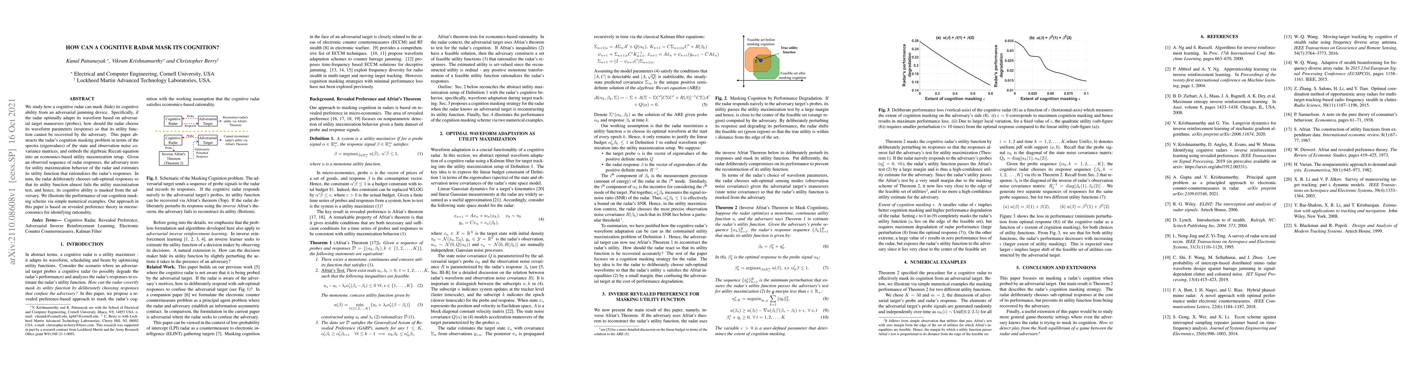 This paper explores strategies for cognitive radar to mask its adaptive capabilities from adversarial jamming devices by deliberately choosing sub-optimal waveform parameters. It employs revealed preference theory to ensure that the radar's utility function cannot be accurately estimated, thereby concealing its cognitive operations.