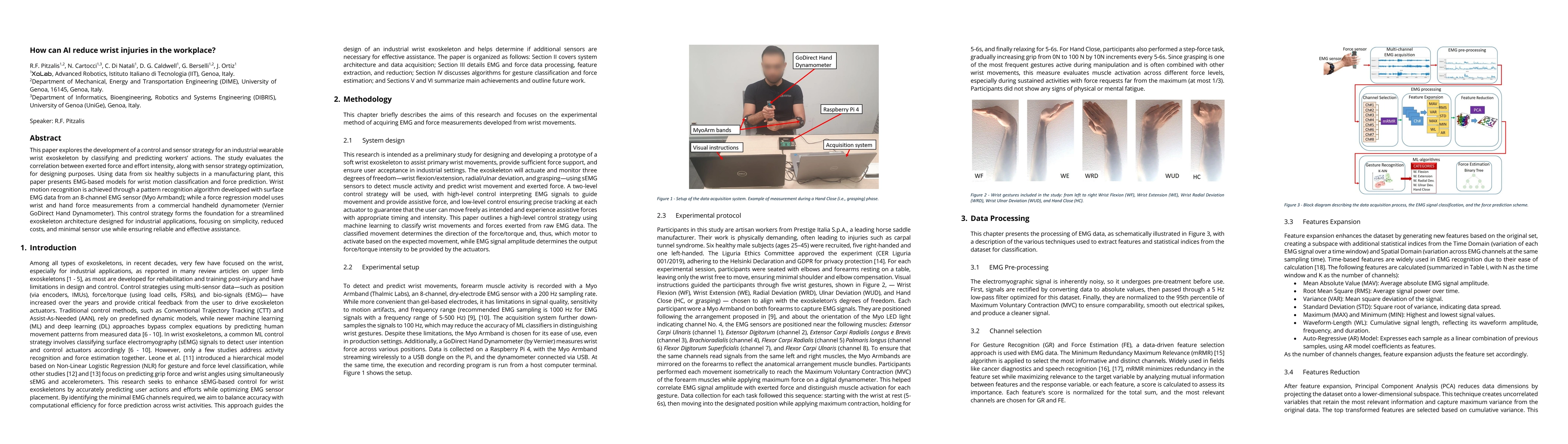 This research is important as it lays the foundation for an AI-driven, cost-effective, and simplified industrial wearable wrist exoskeleton designed to reduce wrist injuries in manufacturing settings by providing reliable assistance based on worker actions and force intensity.