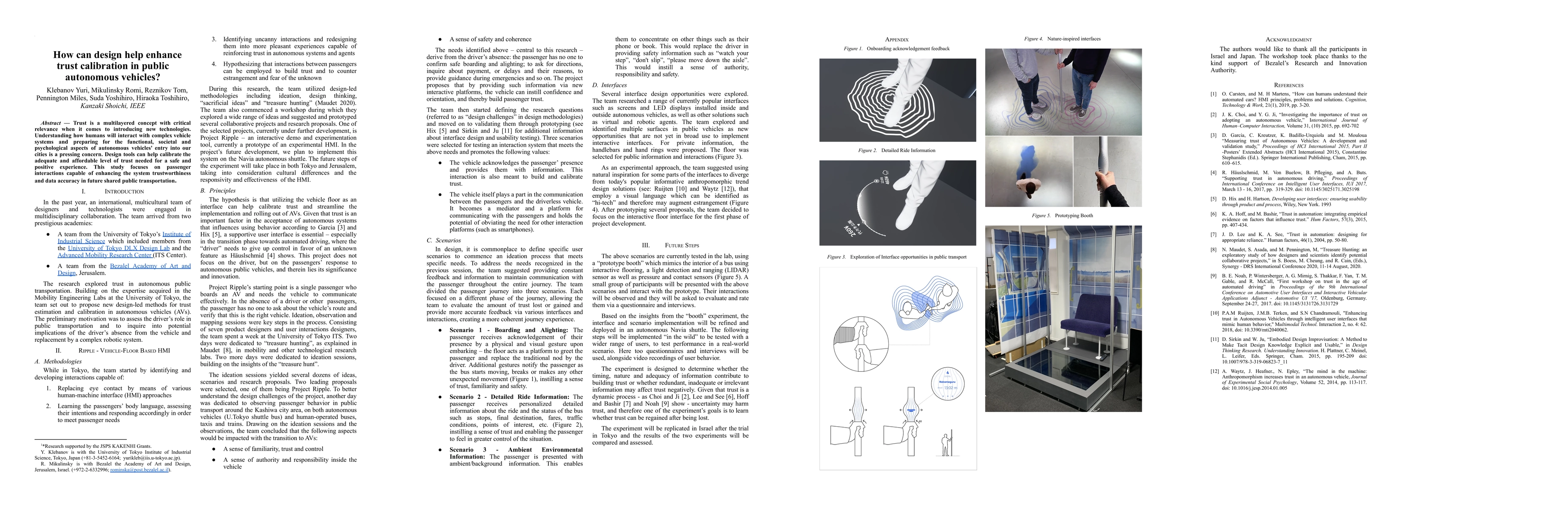 Trust is a multilayered concept with critical relevance when it comes to introducing new technologies. Understanding how humans will interact with complex vehicle systems and preparing for the functional, societal and psychological aspects of autonomous vehicles' entry into our cities is a pressing concern. Design tools can help calibrate the adequate and affordable level of trust needed for a safe and positive experience. This study focuses on passenger interactions capable of enhancing the system trustworthiness and data accuracy in future shared public transportation.